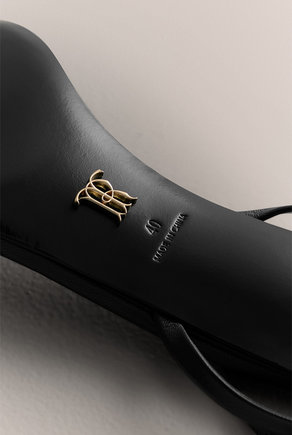 - Gold metal brandmark on outsole