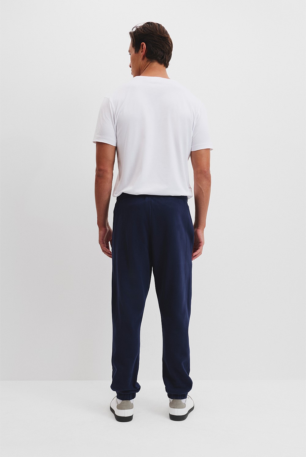 An everyday staple made using brushed Australian cotton for a soft hand feel. Cut in a tapered fit, it has angled side pockets, an elasticated waistband and leg cuff and subtle logo detailing.
