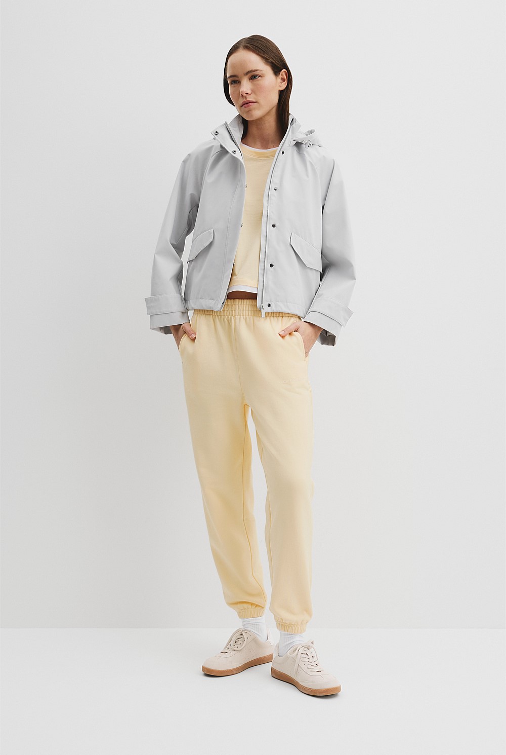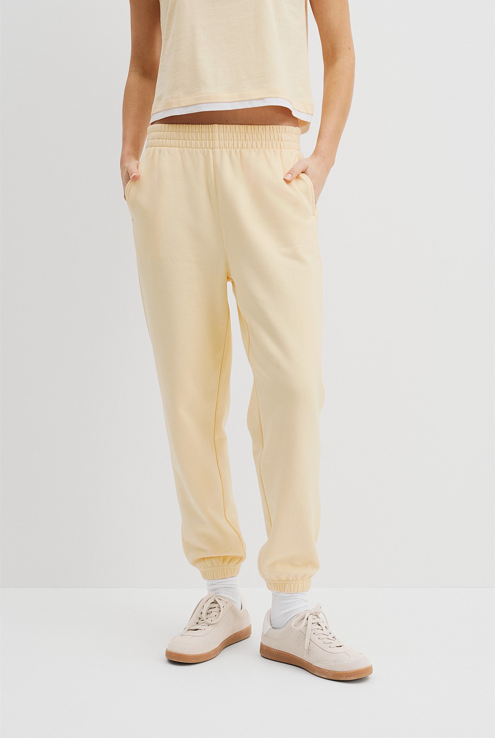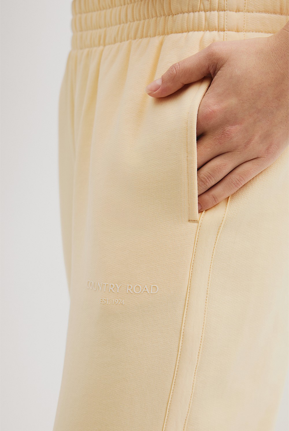 This relaxed track pant is made using soft Australian cotton. It features an elasticated waistband and cuff, a printed logo below the pocket, and slim welt pockets for added detail.