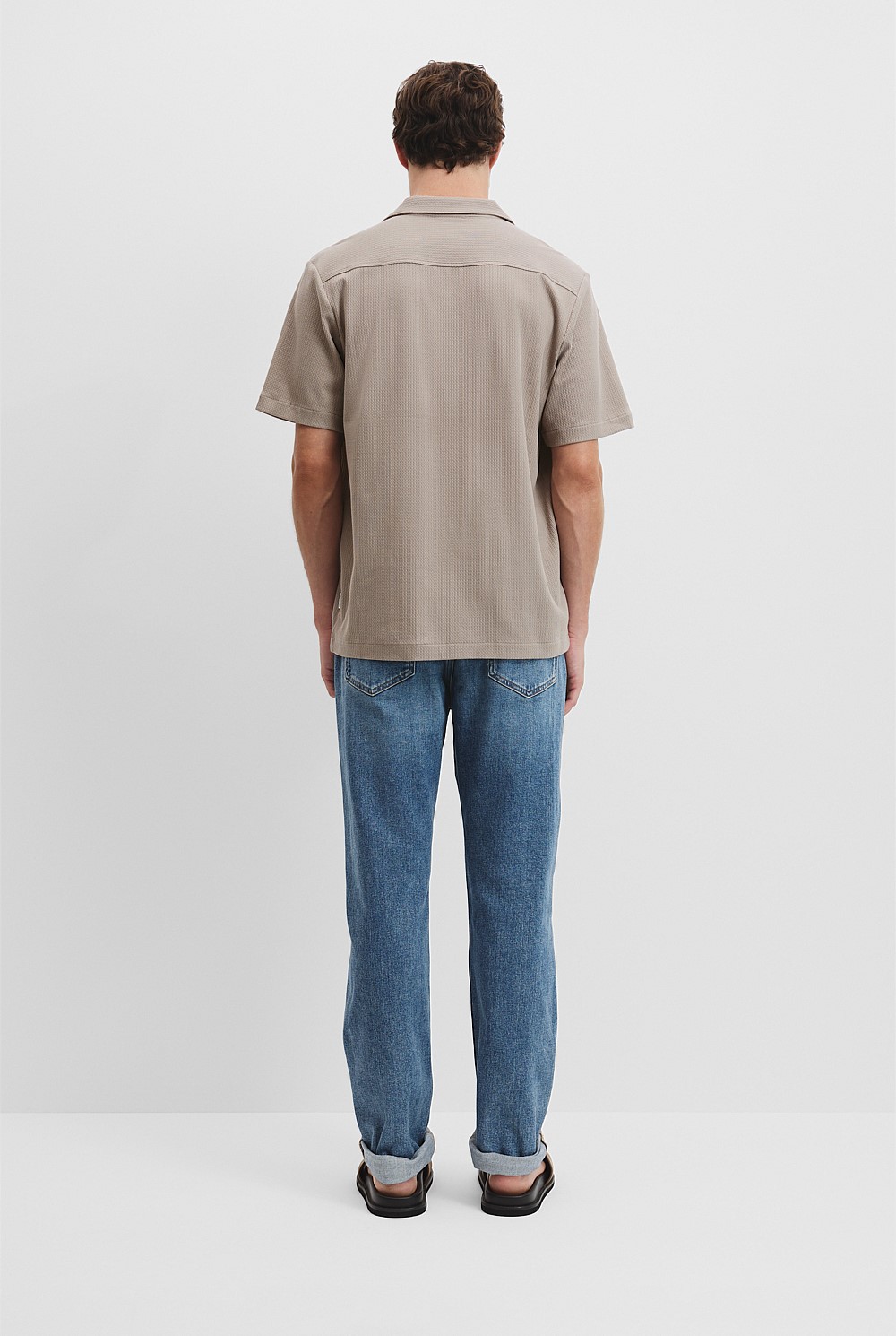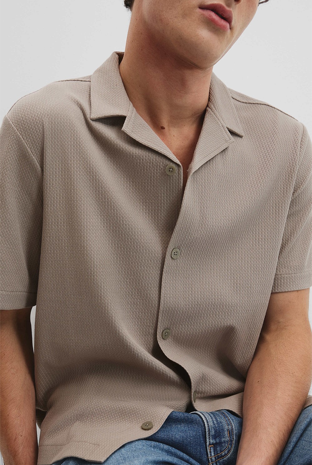 Proudly made using Australian cotton, this shirt features a collared neckline, button-through front and textured finish.