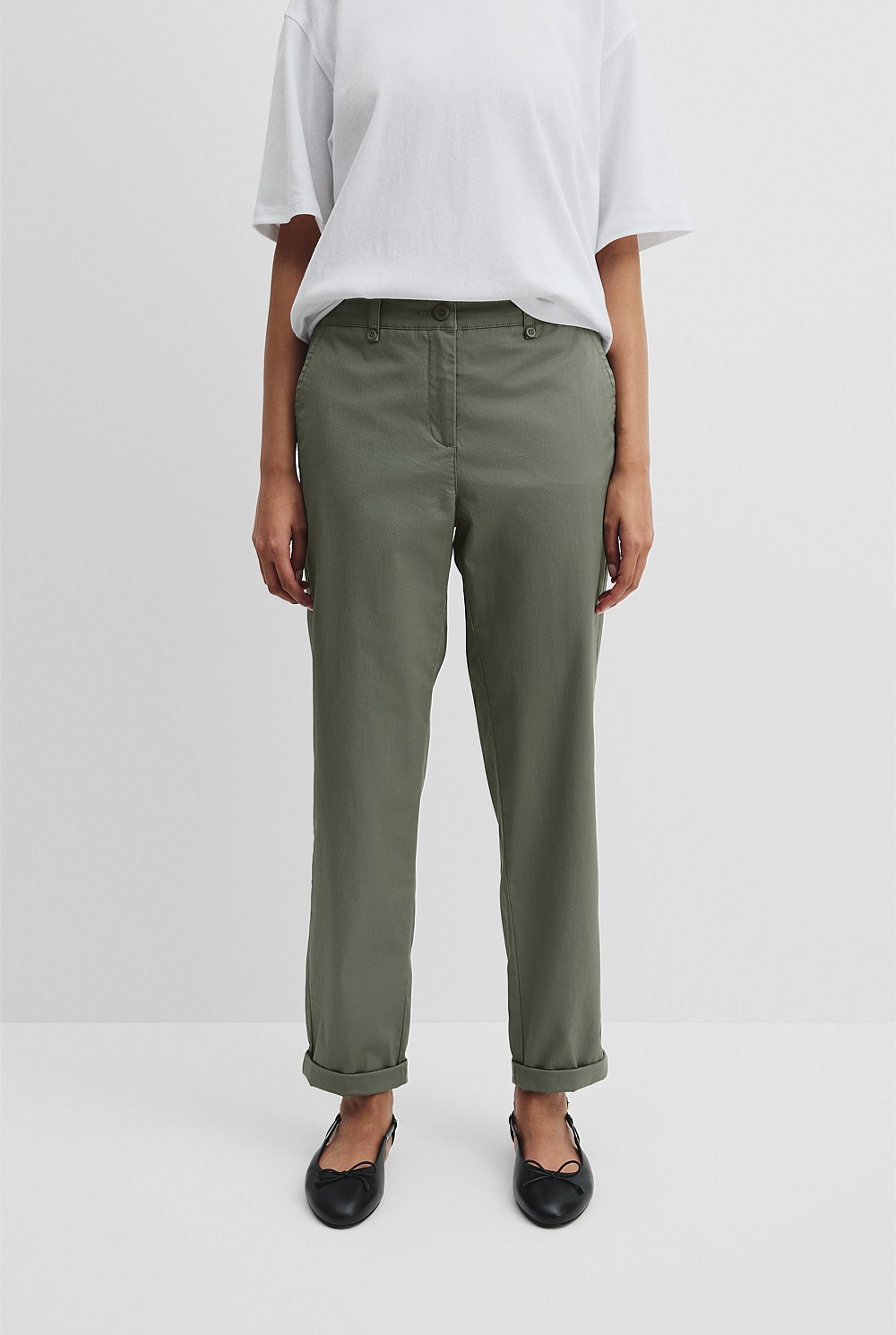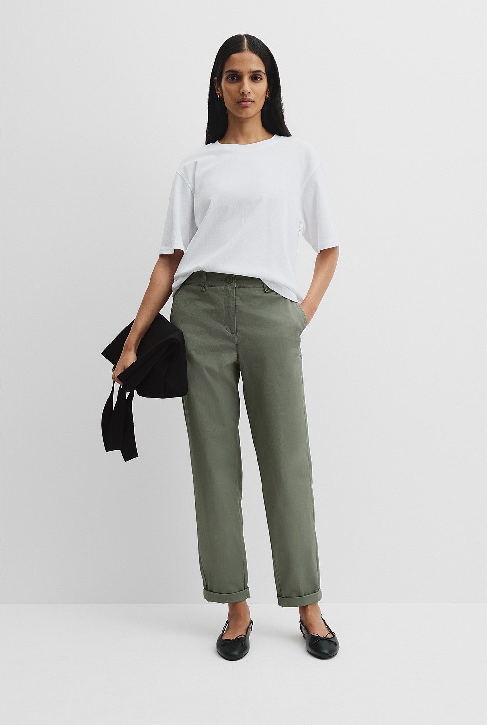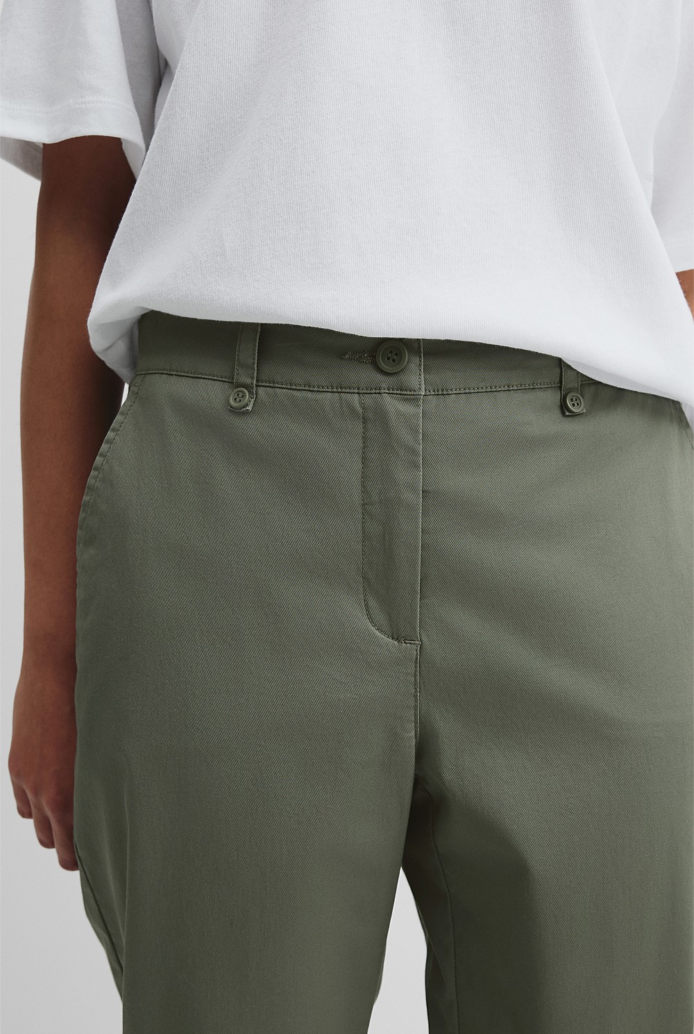 An everyday staple, this pant is made in Australian cotton twill with a hint of stretch for comfort and ease. It has a straight leg with slight tapering and a rolled cuff.