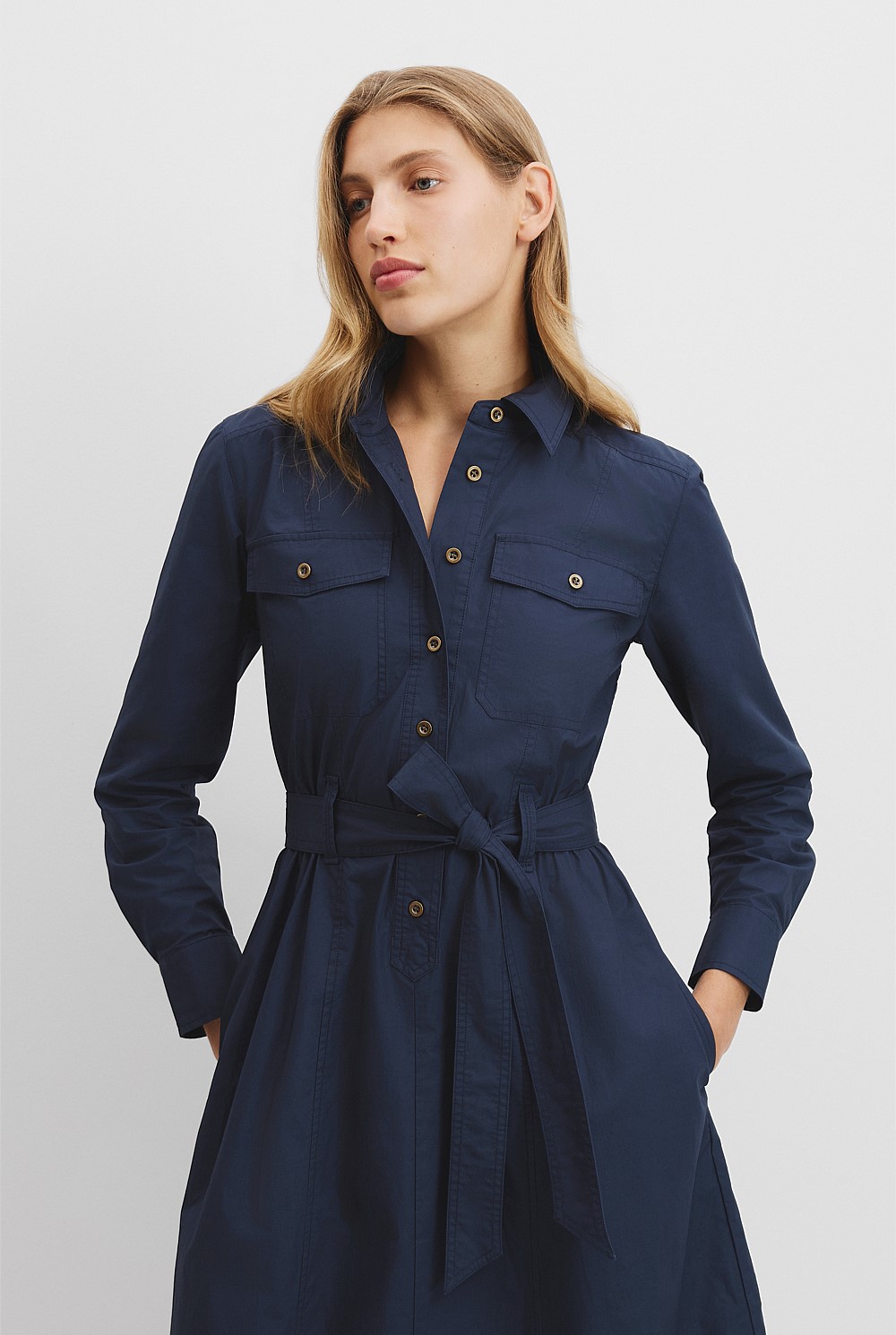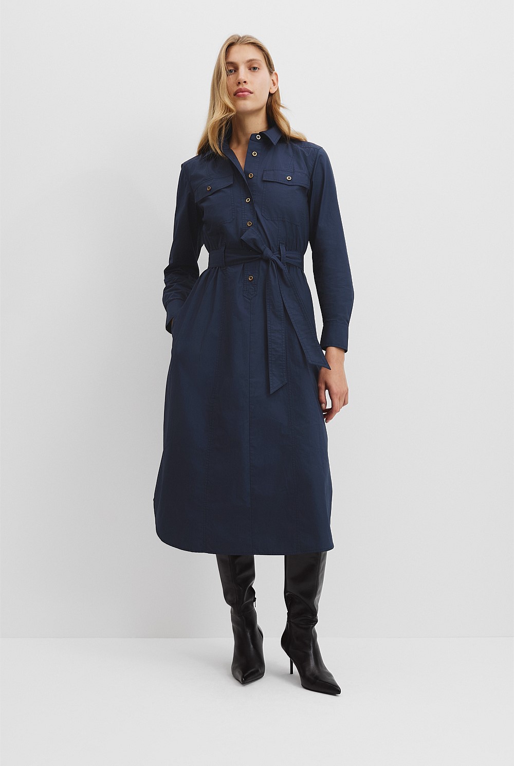 Belted Cotton Midi Dress