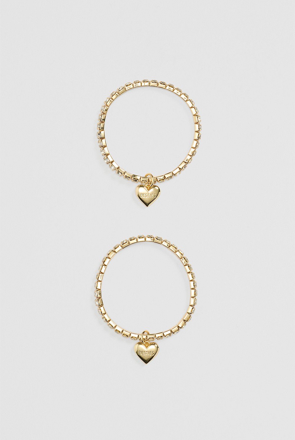 A pack of two metal cup chain bracelets featuring glass crystals and an engraved 'Besties' heart charm.