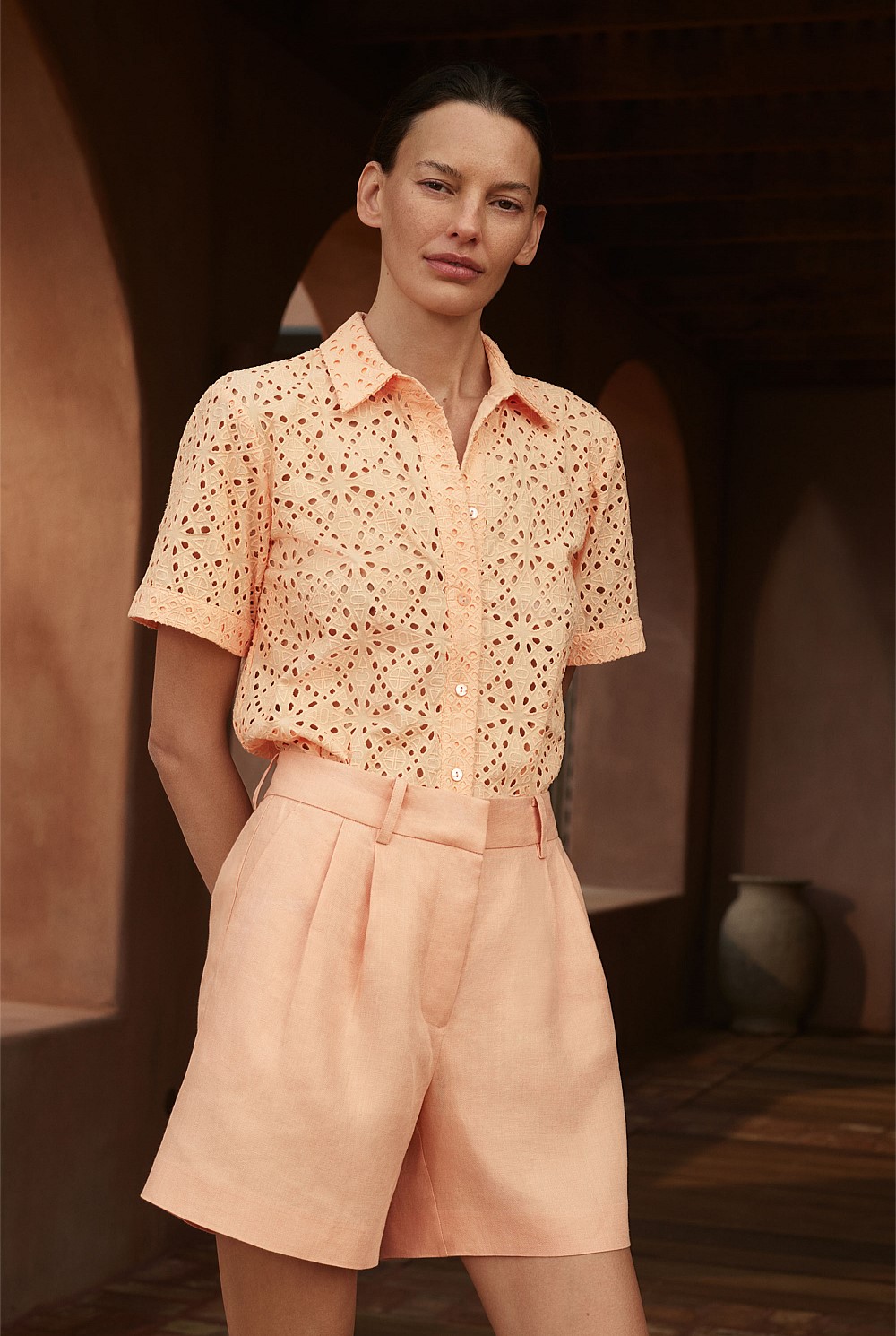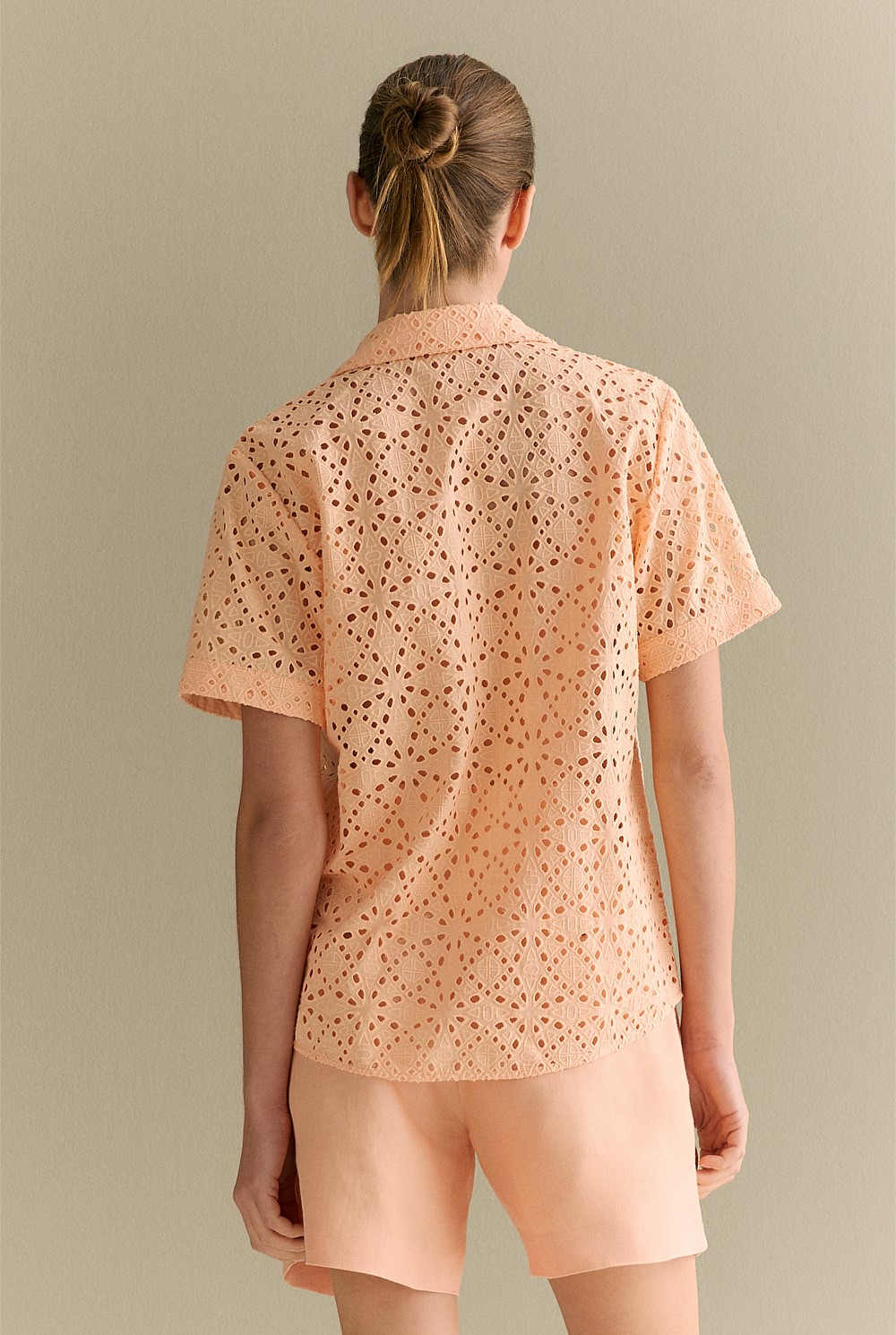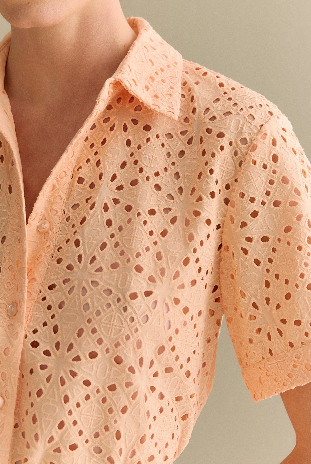 Renewing a summer classic, this shirt is cut from broderie anglaise cotton with a classic fit and curved hem.