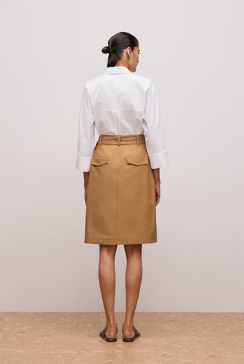 Front-facing triangle flap pockets, back pockets with triangle flaps