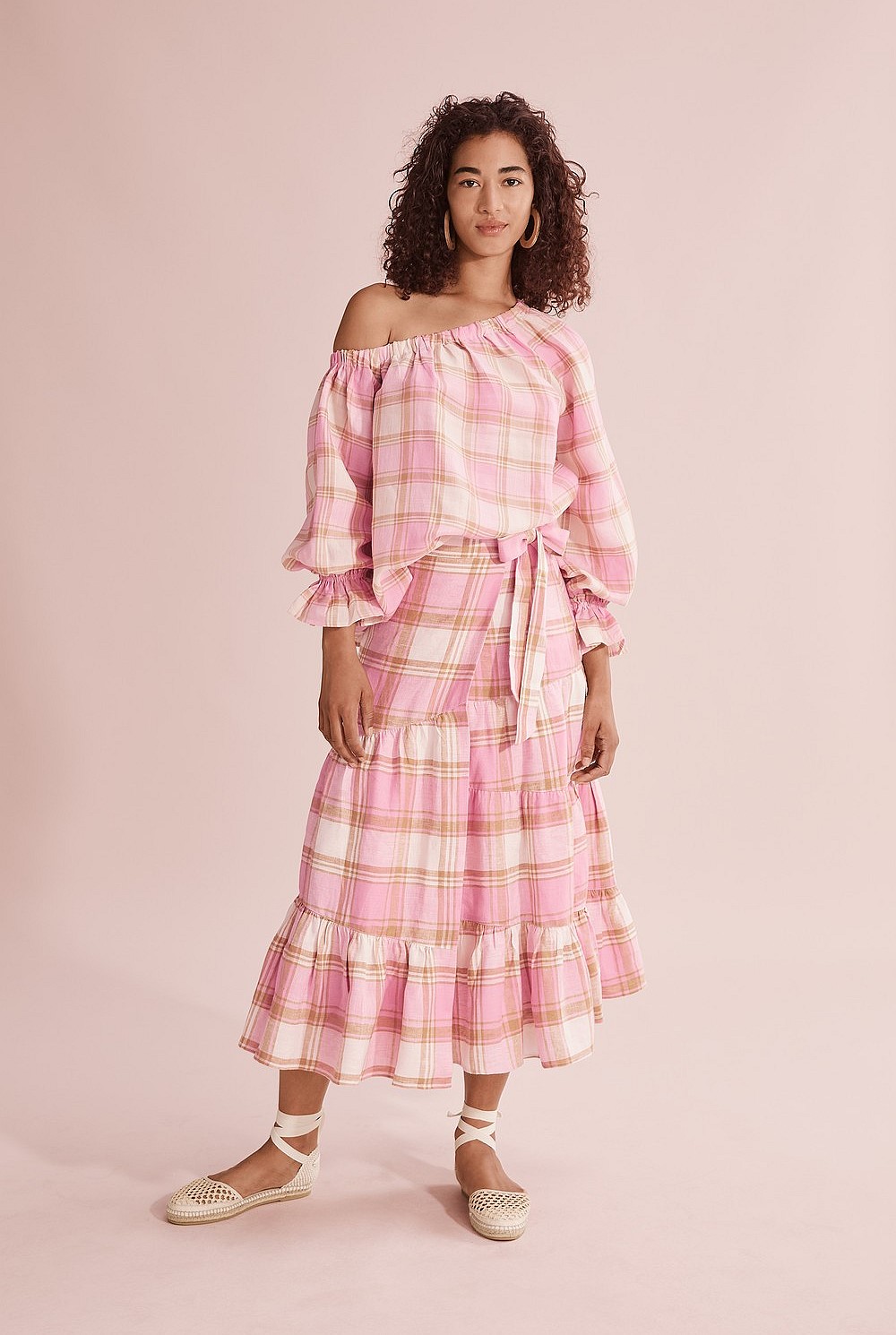 - Asymmetric, elasticated neckline