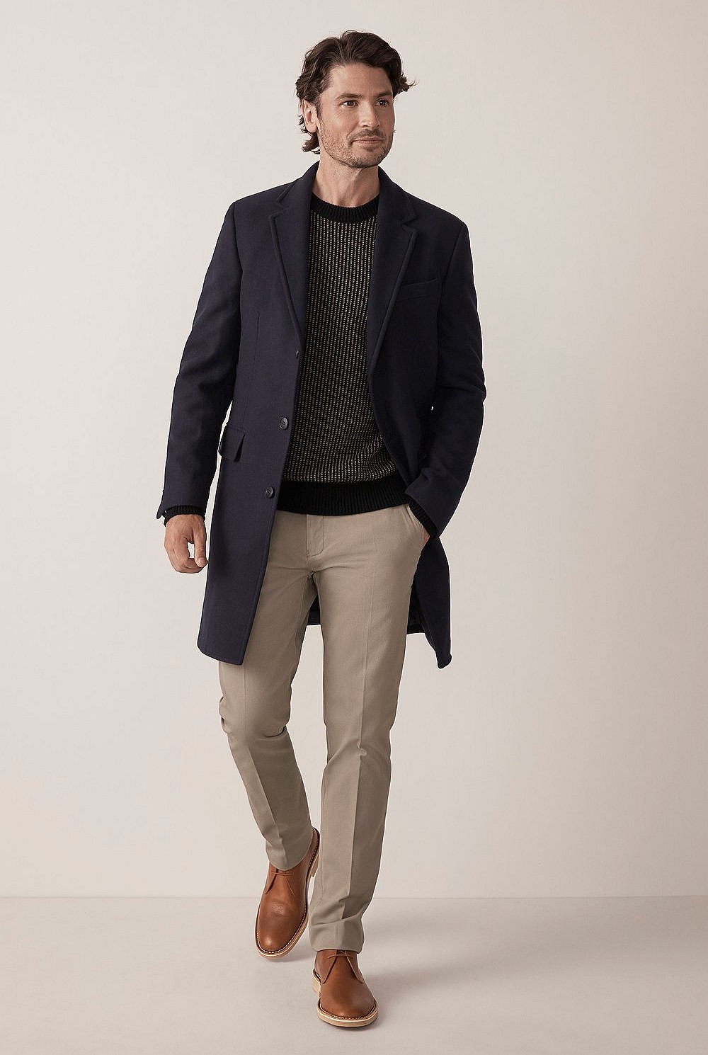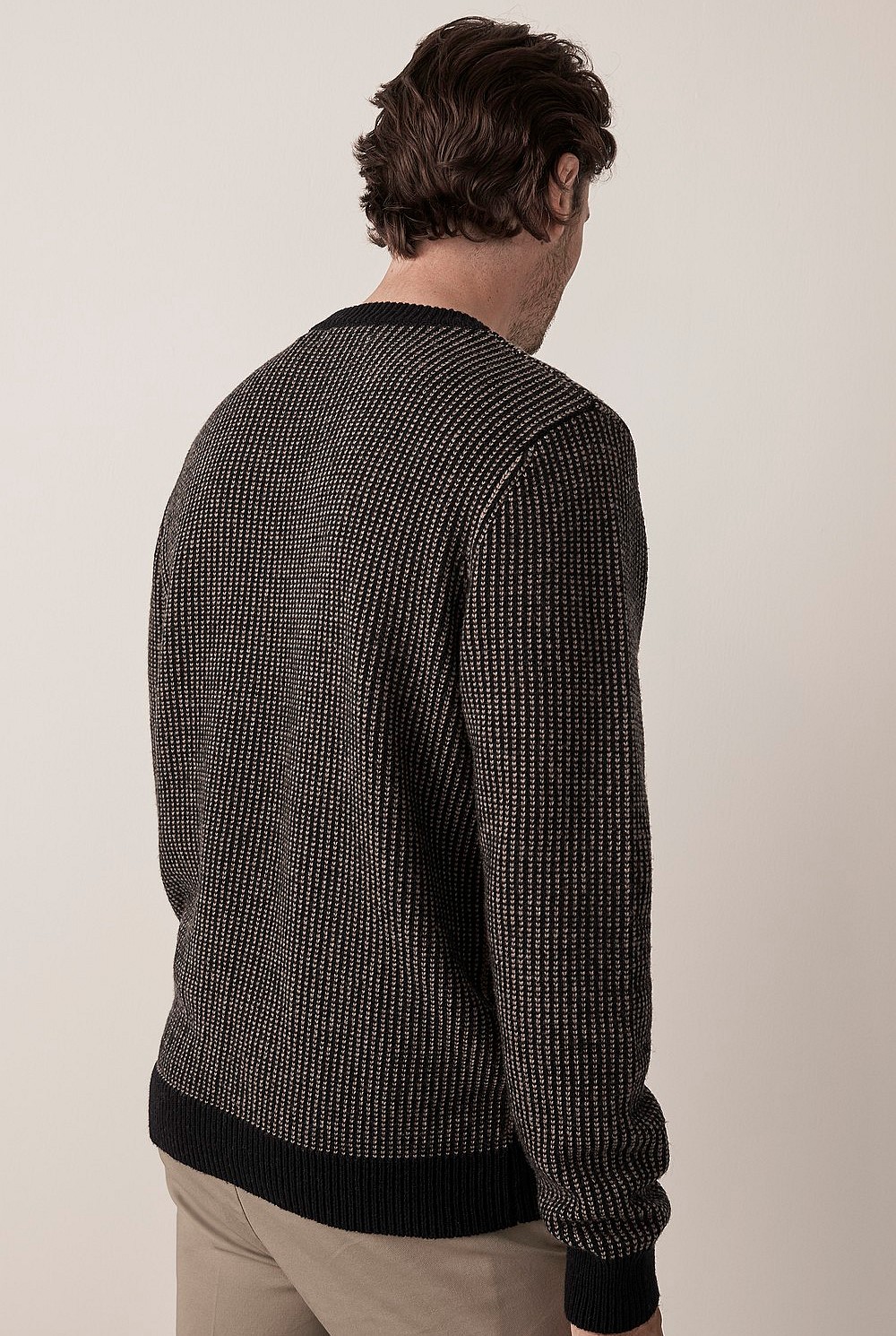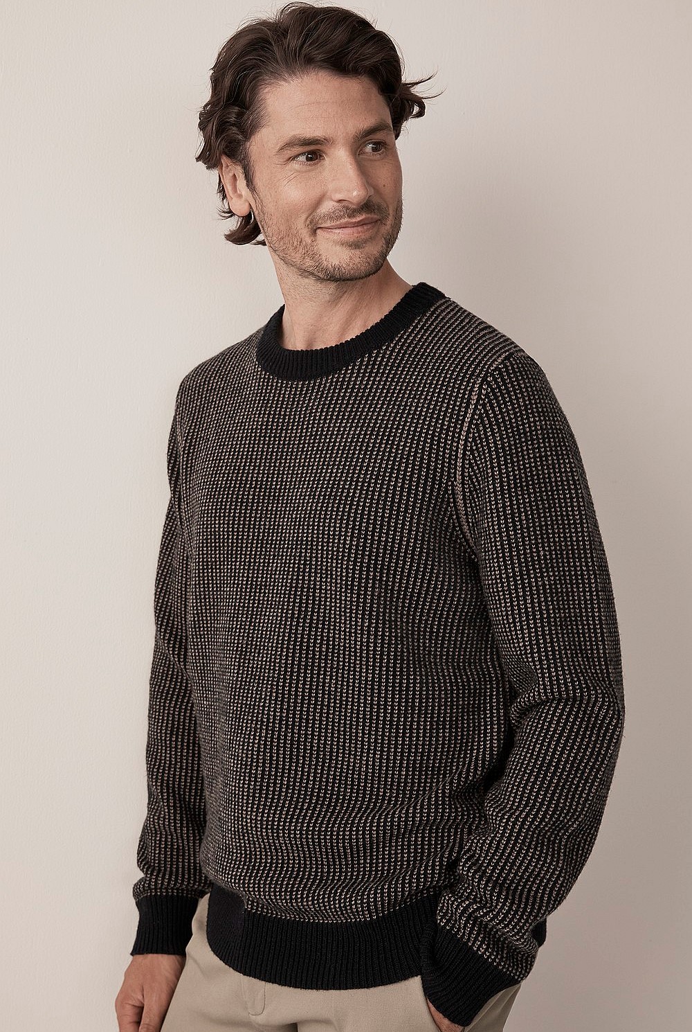A reliable autumn jumper crafted in a premium blend of wool-cashmere to offer comfort and warmth in equal measure. Cut in a relaxed fit, with long sleeves and a crew neck featuring a contrast stitch design. Perfect on top of t-shirts, style with jeans and leather boots for refined style. Available in olive and navy shades this season.