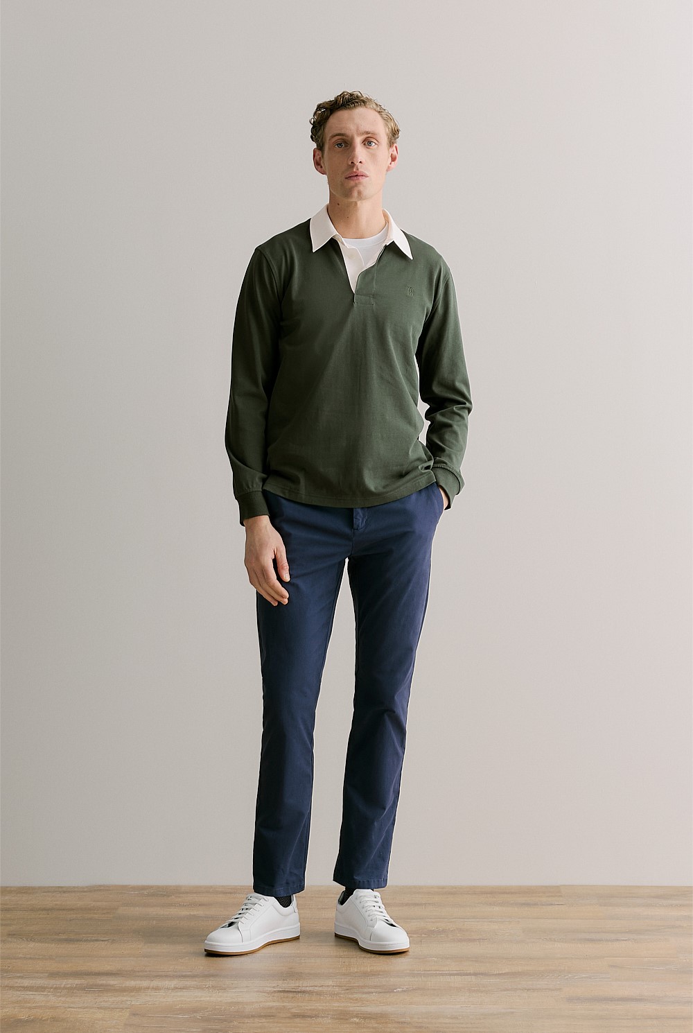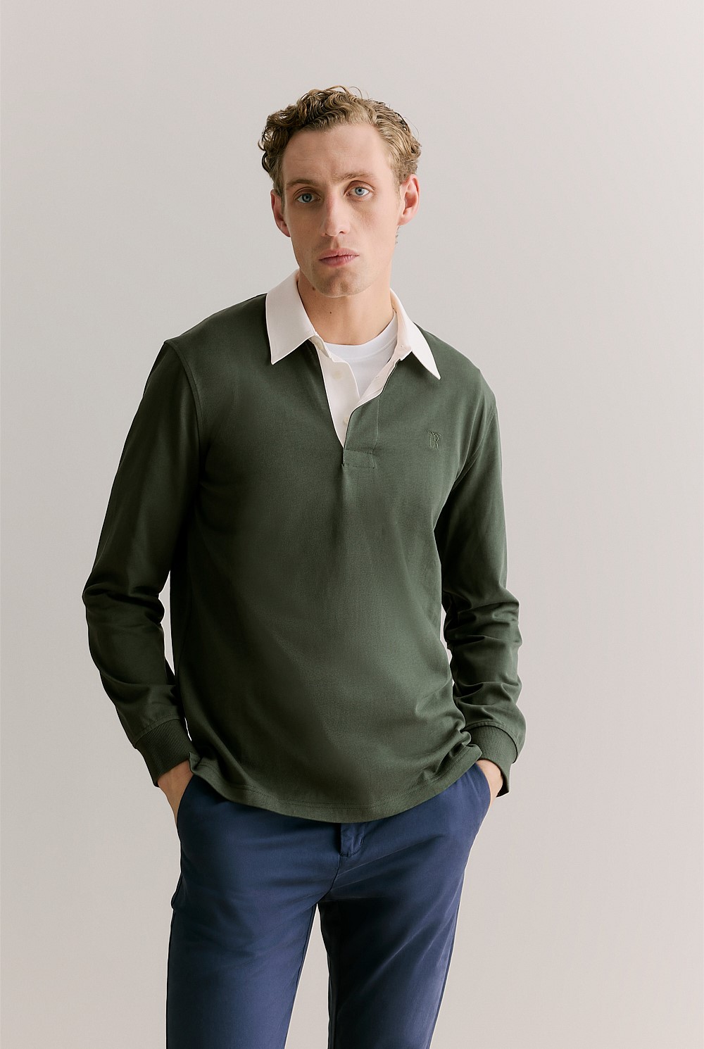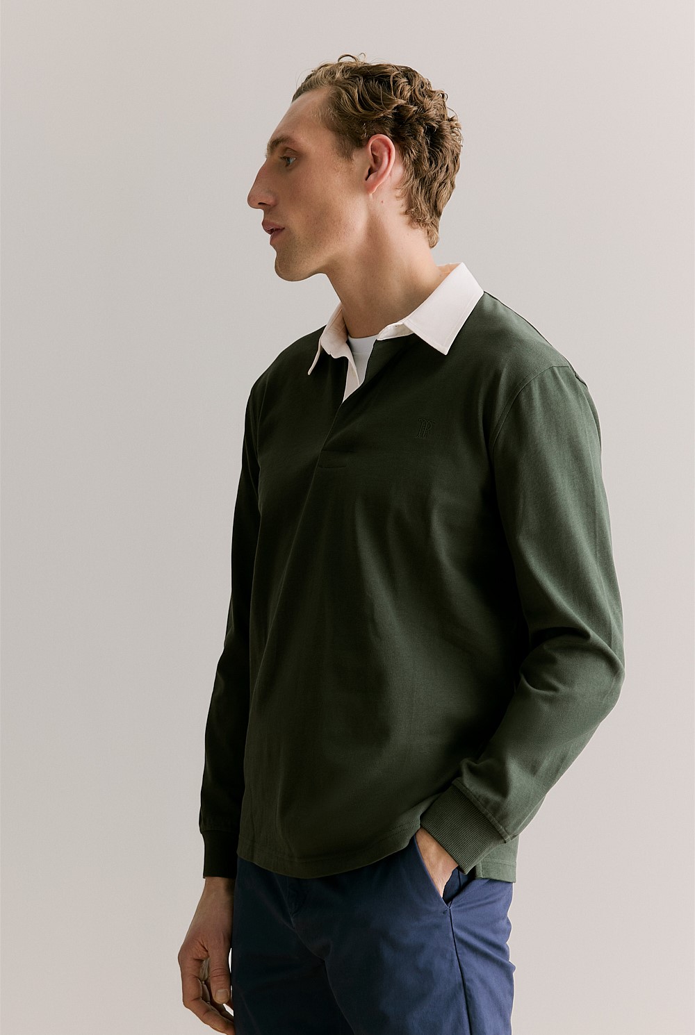 Our minimalist take on the traditional rugby polo, crafted in a midweight cotton jersey. Designed with a contrast twill collar, comfortable stepped hem and our stitched monogram.