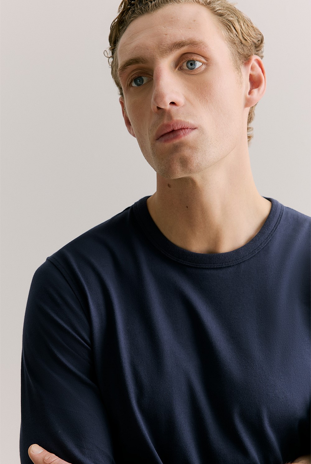 A soft crew T-shirt cut from brushed cotton, with twin stitching for a clean, refined finish.