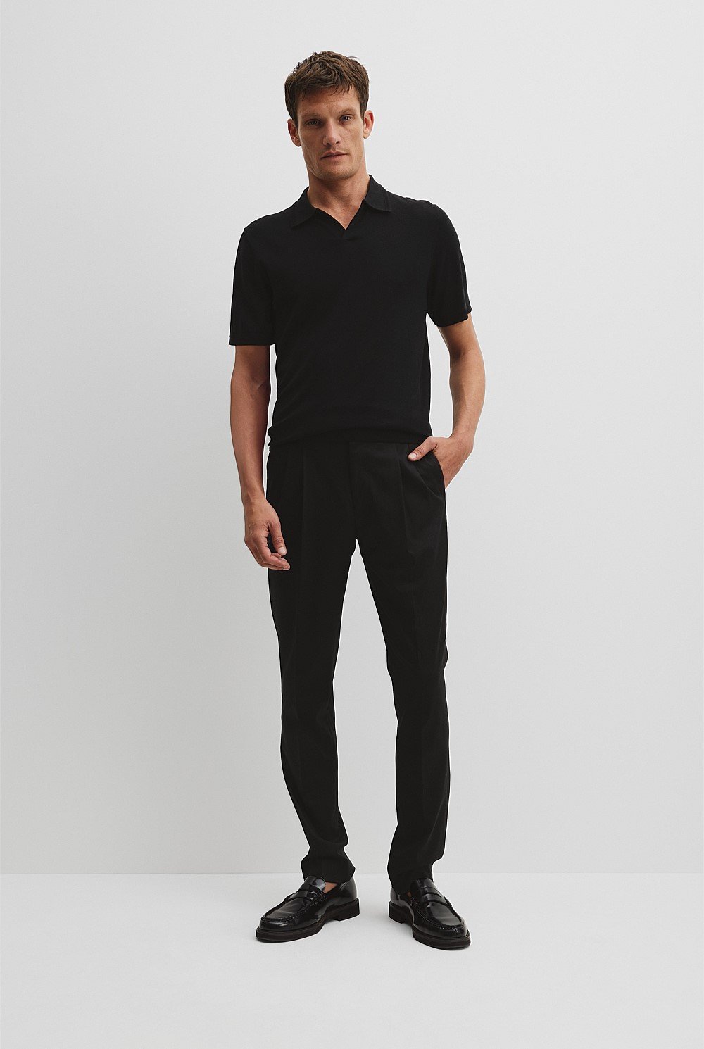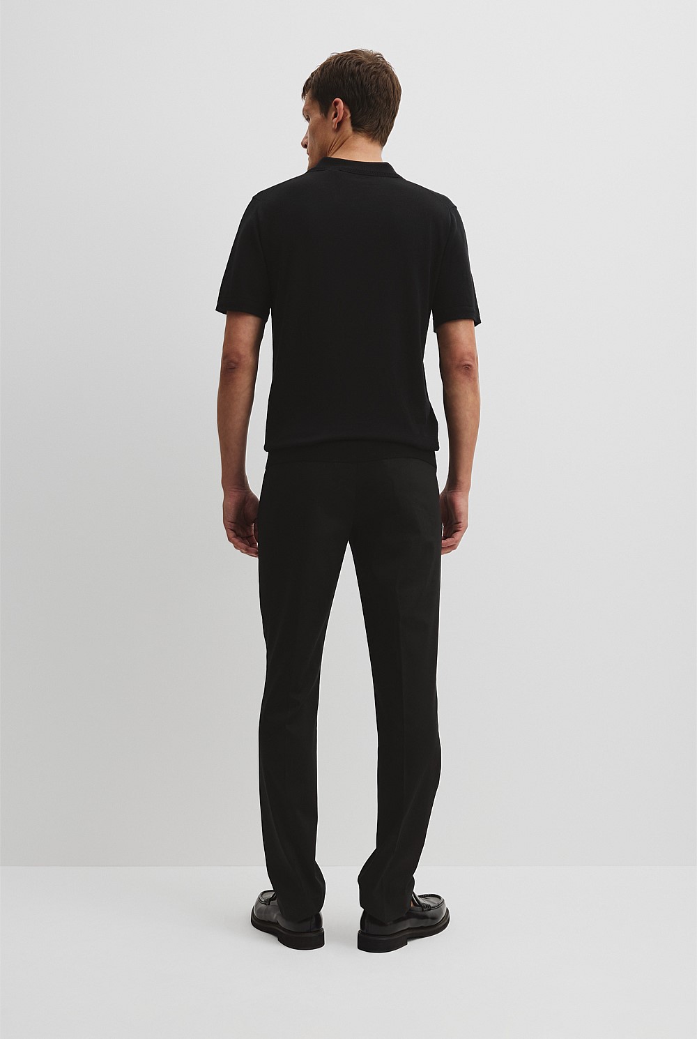 This polo is made from our signature cotton silk yarn for a soft and lightweight hand feel. Constructed in a jersey stitch, it features a classic trophy neck and textured rib detailing.