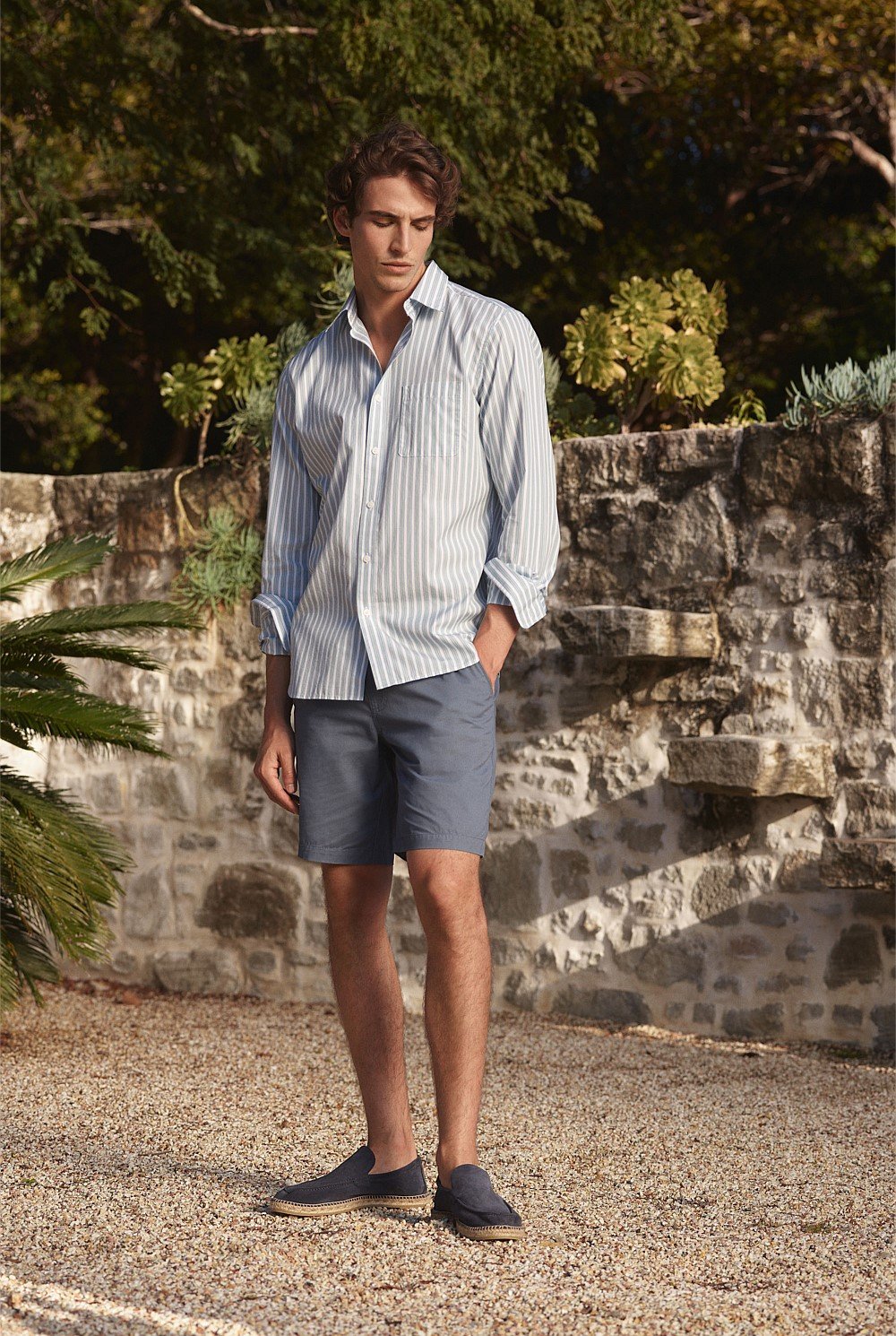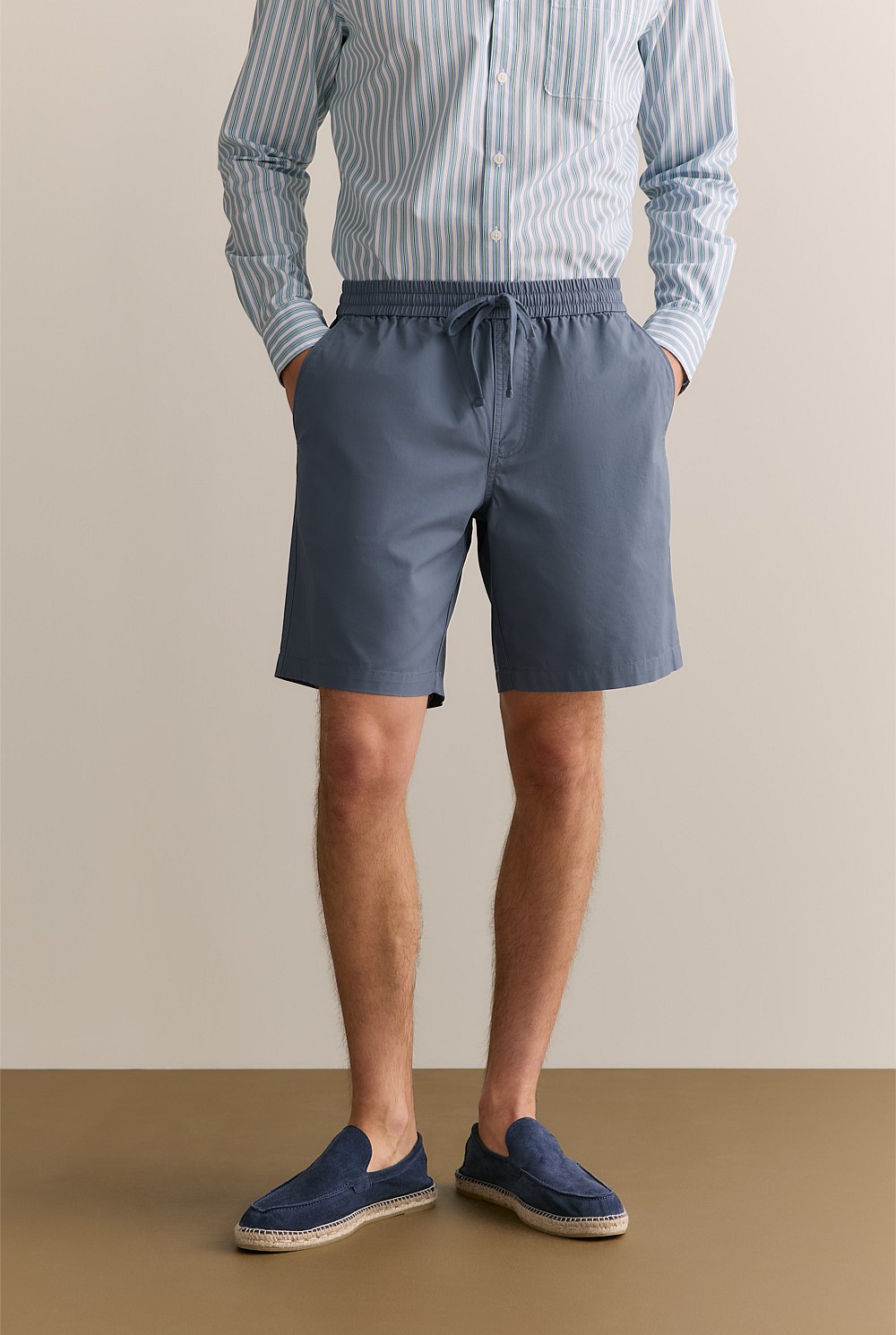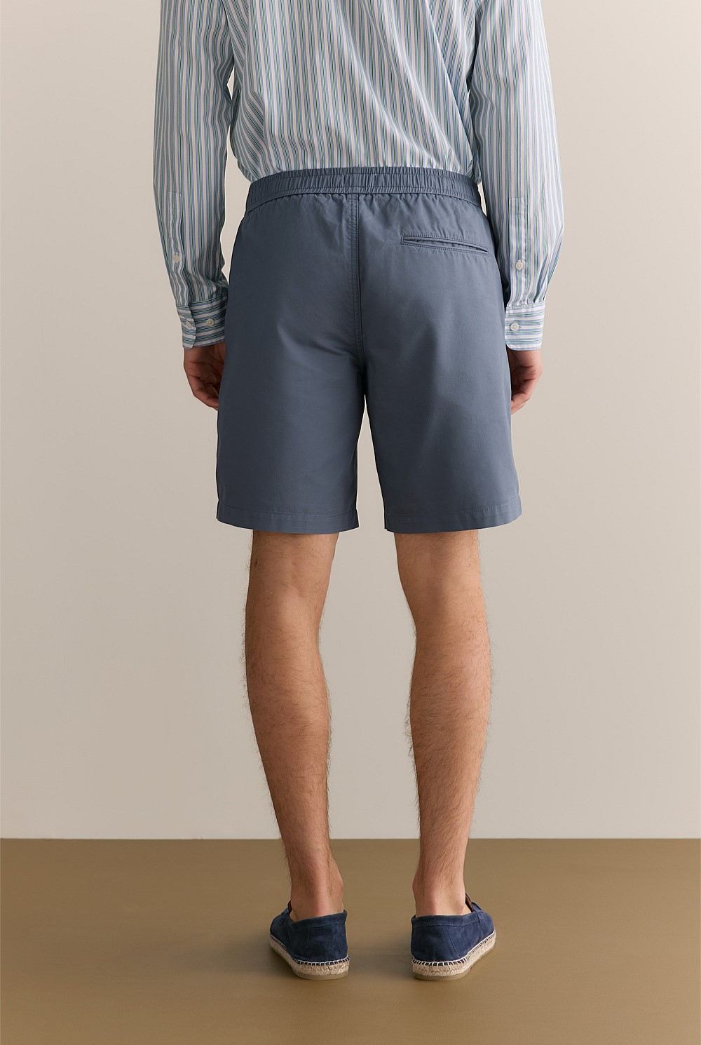Our woven twill short features an elasticised waist and flat cotton drawcord for functional ease.
