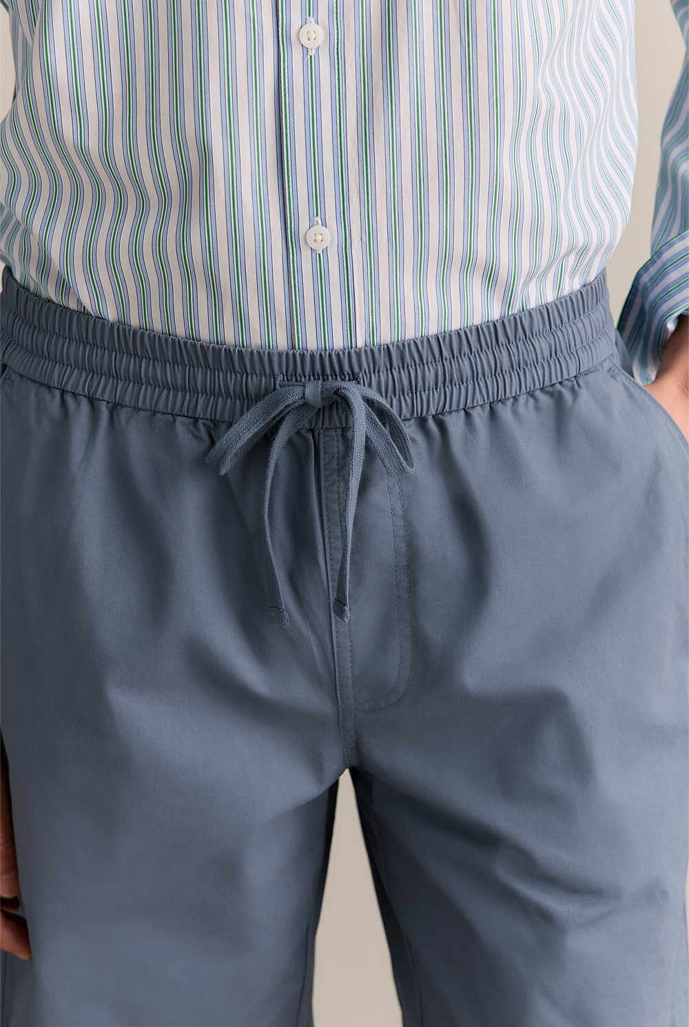 - Elasticised waist with flat cotton drawcord
