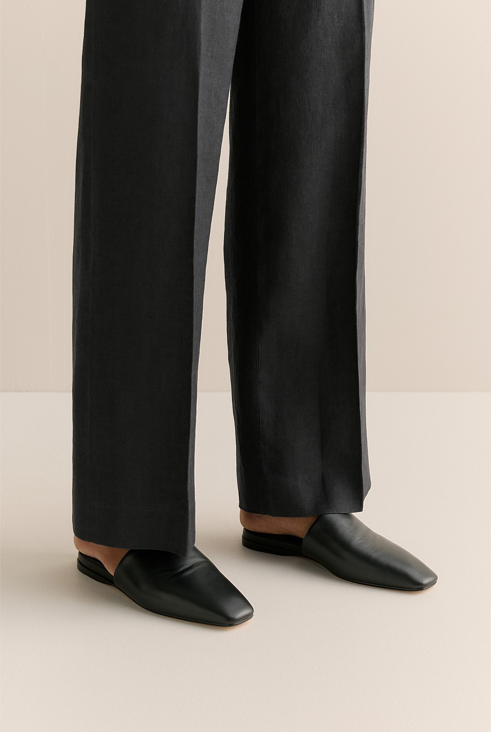 Crafted from smooth leather with a subtle wedge, this slip-on mule offers effortless polish and all-day comfort.