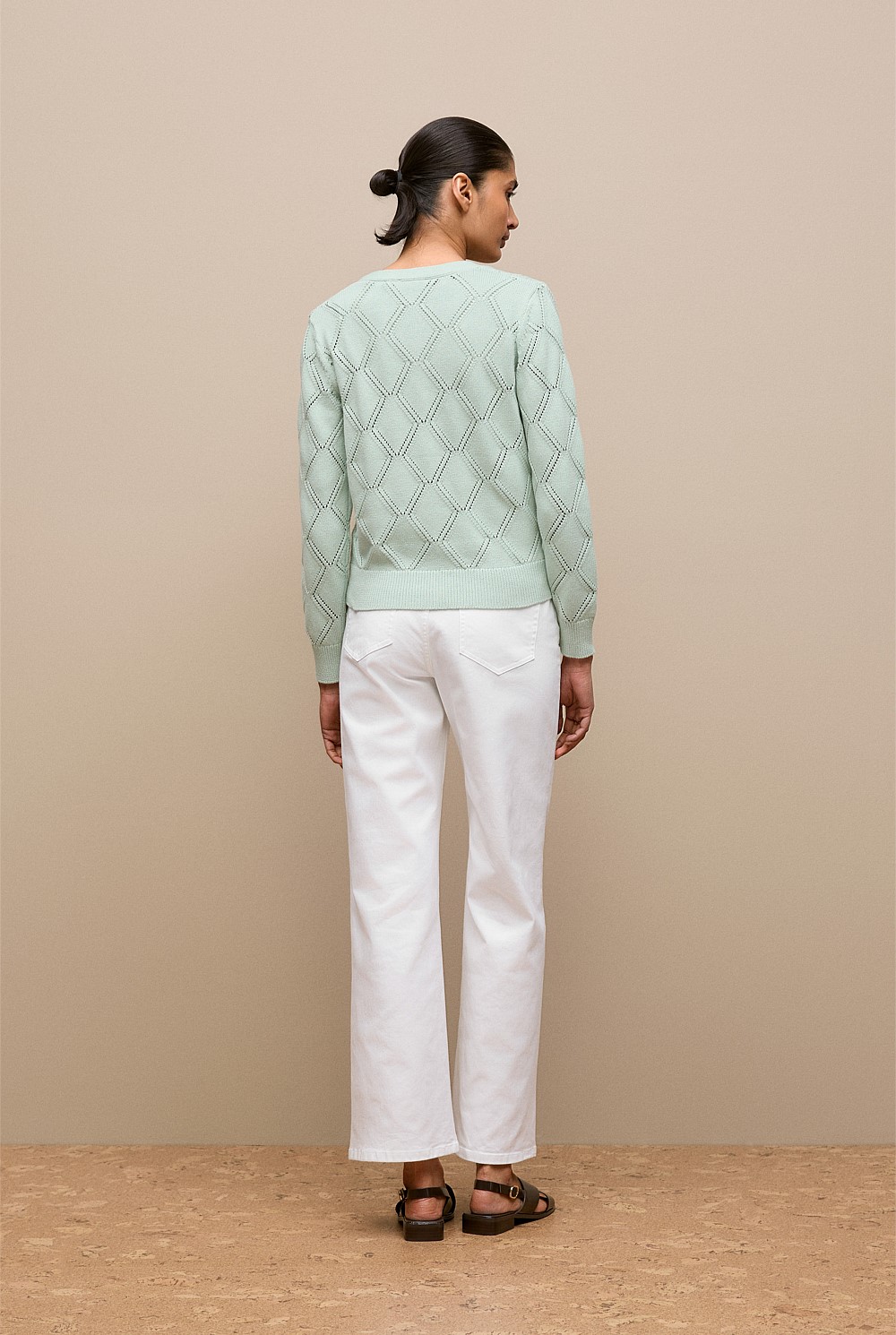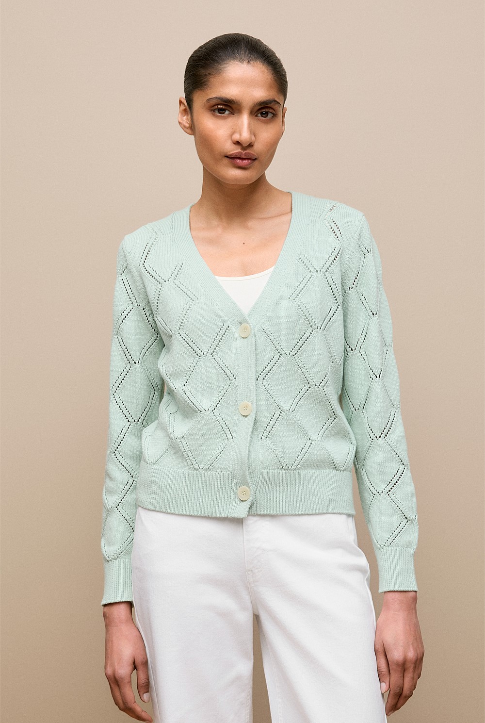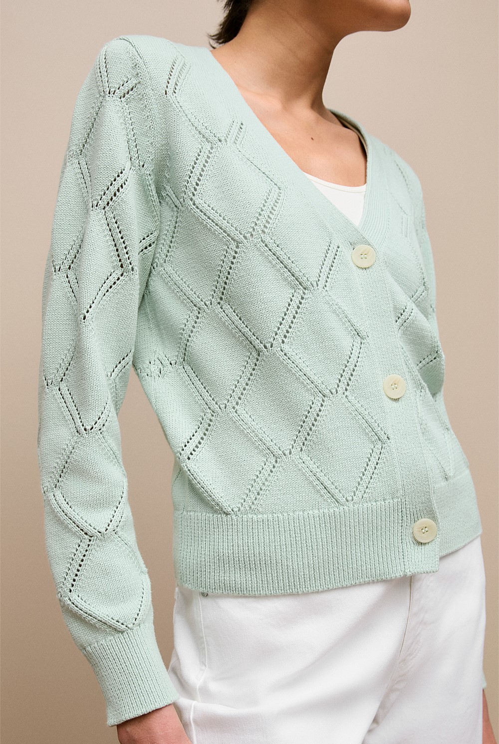 Diamond Pointelle V Neck Cardigan