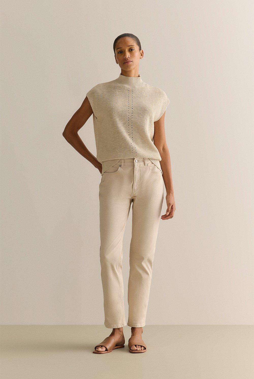Our straight-leg jean is crafted from cotton-rich denim, garment-dyed for a soft, lived-in feel and rich, dimensional colour. Designed with a mid-rise waist and classic five-pocket styling.