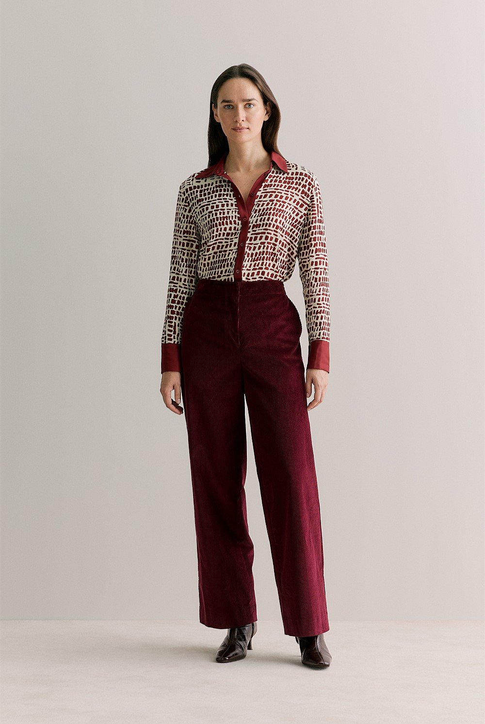 A draped, fluid shirt cut from smooth viscose twill. Designed with a geometric spot print and a contrast solid collar and placket for a refined finish.