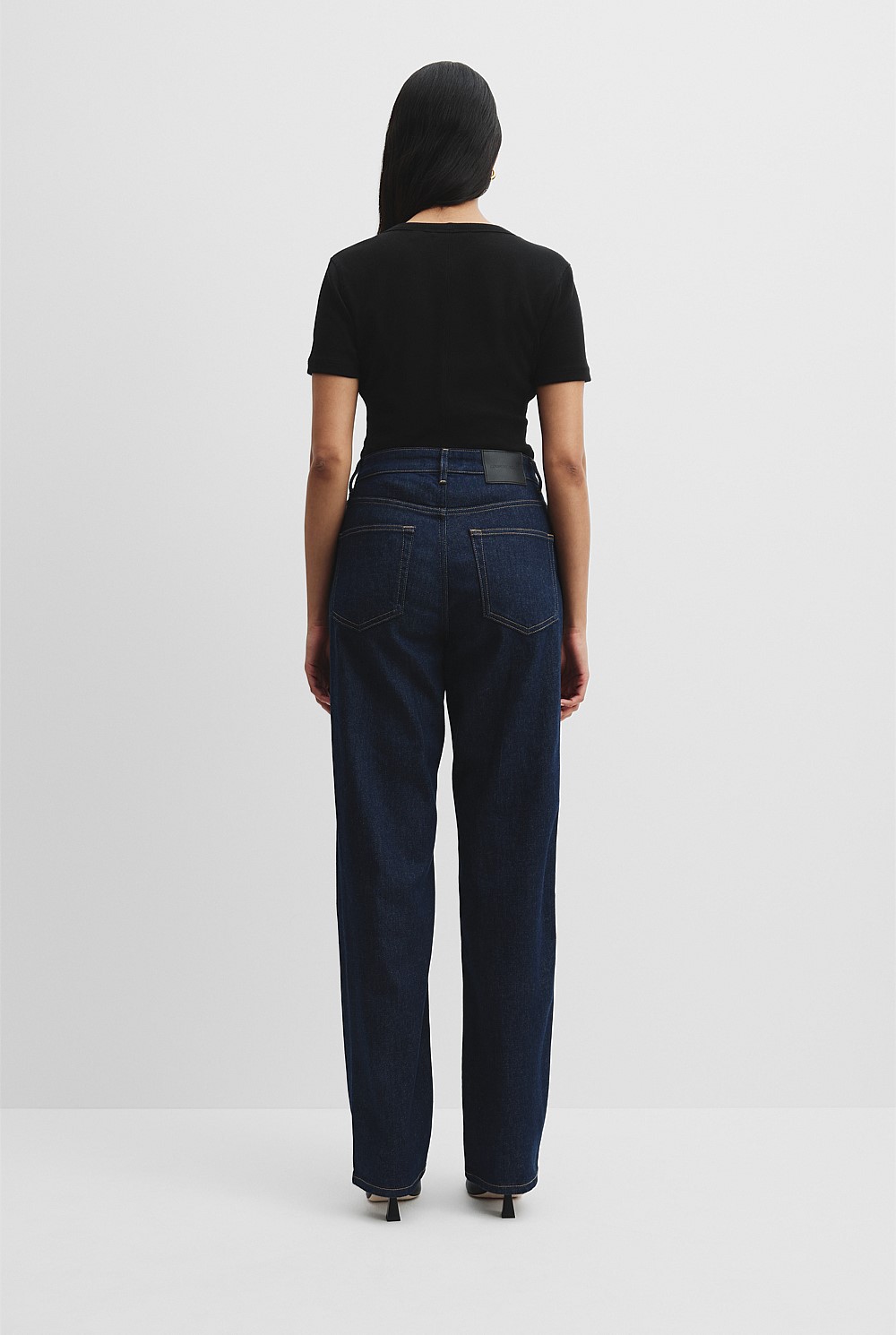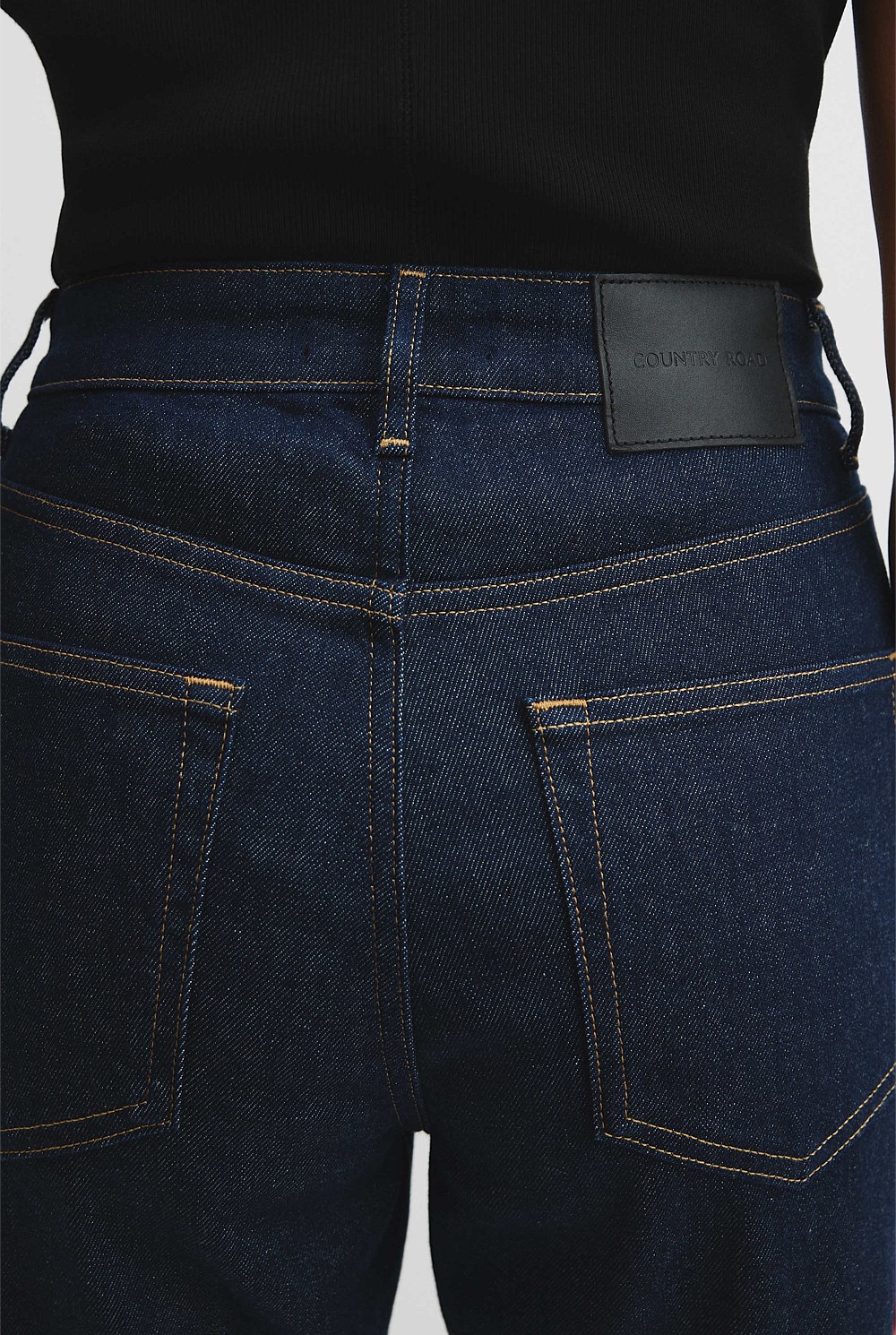 This jean has a flattering high-rise waist and a straight leg silhouette. It features a fly front, five-pocket styling and a hint of stretch for comfort.