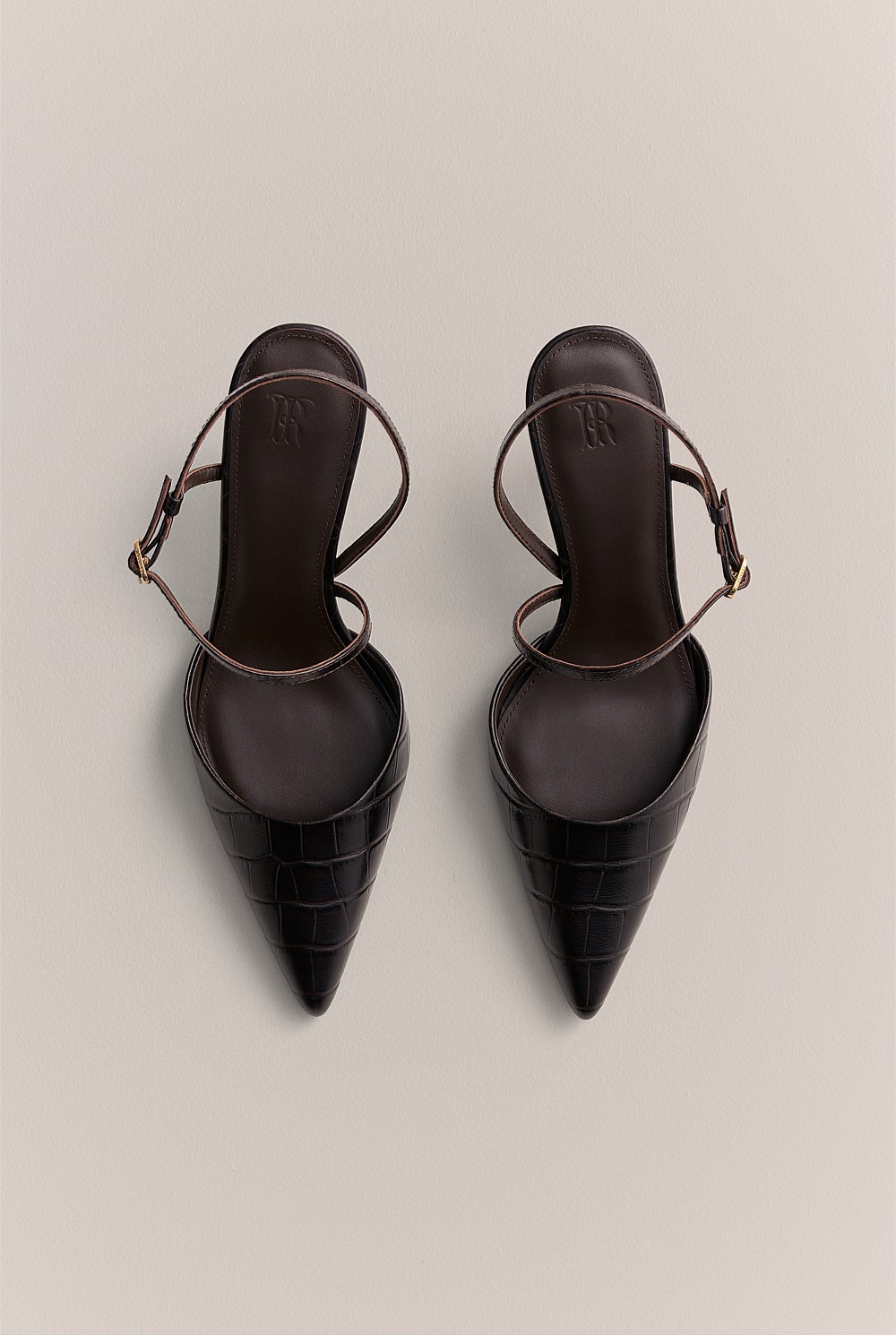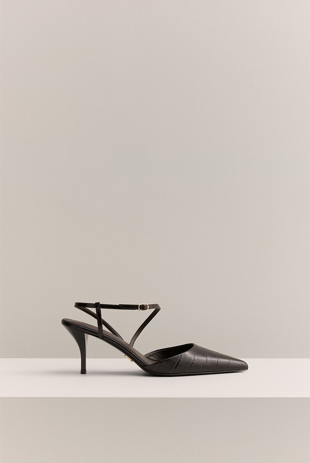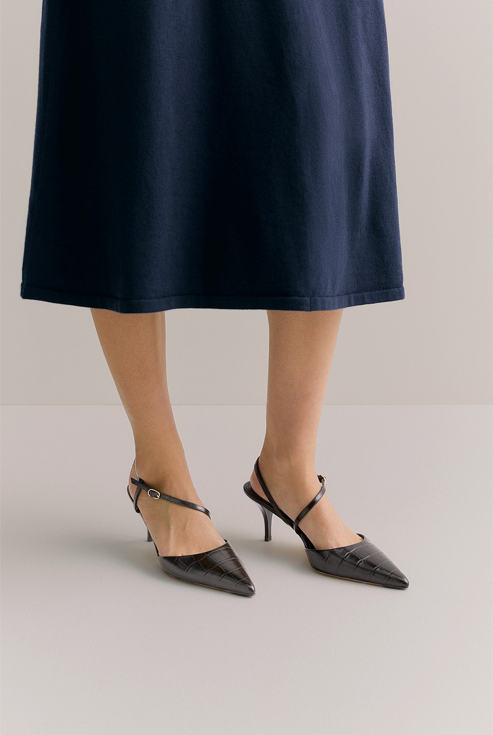 Crafted from leather, the Jenolan features asymmetric straps positioned for a flattering fit. A pointed toe and cushioned insole complete the sleek, minimalist design.