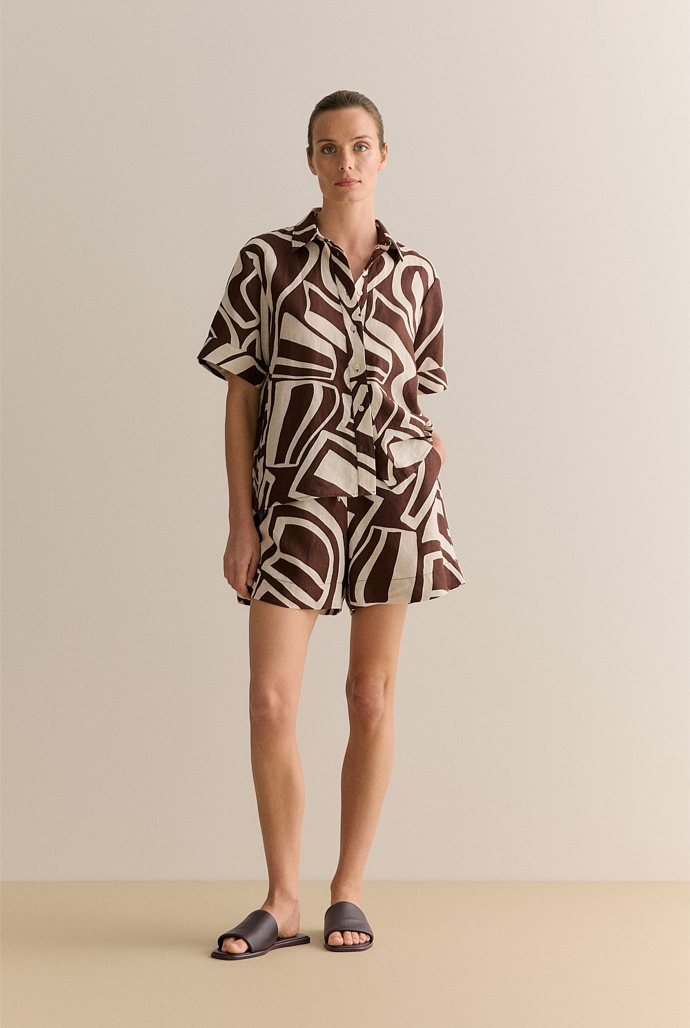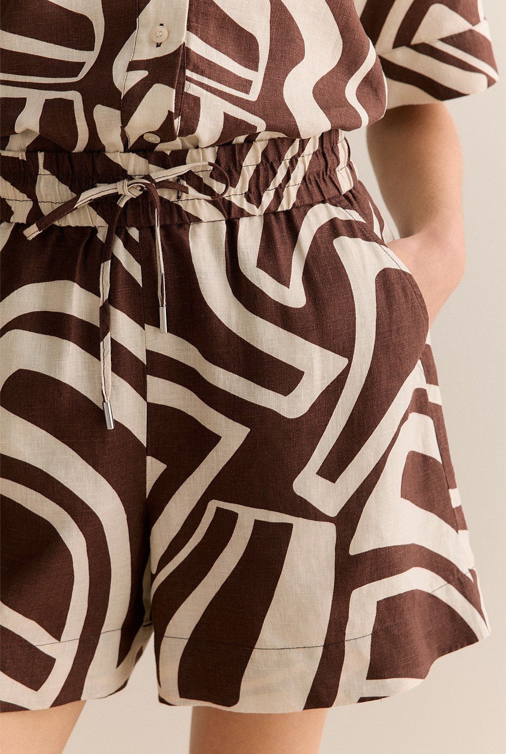 Made from premium French linen, this relaxed short features a geometric print and soft drawcord waist. Style with our Kai shirt for a coordinated casual look.