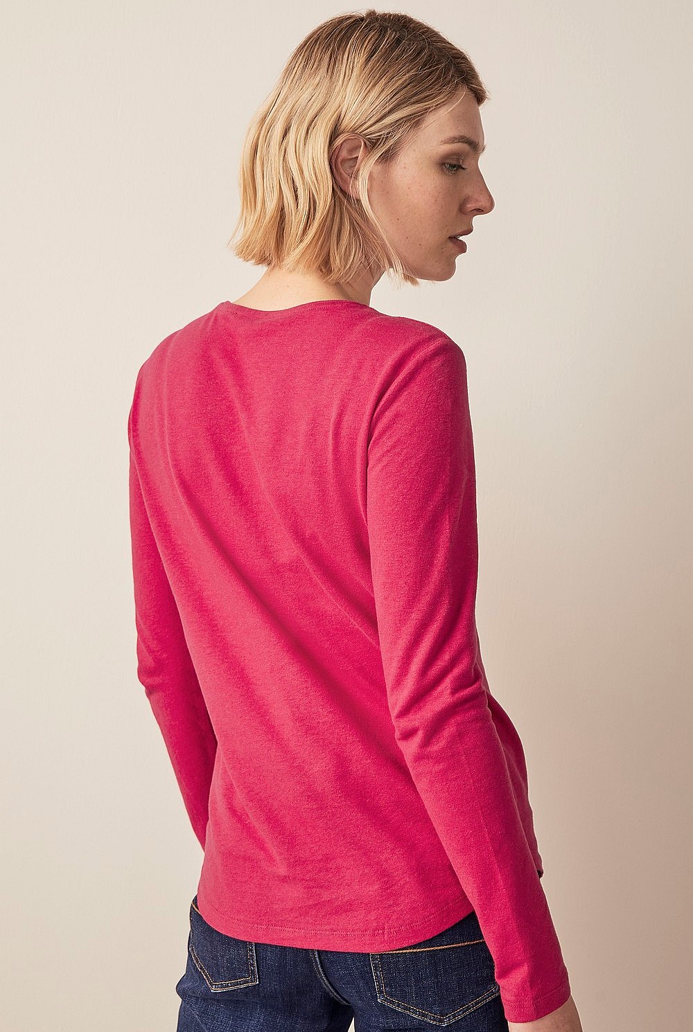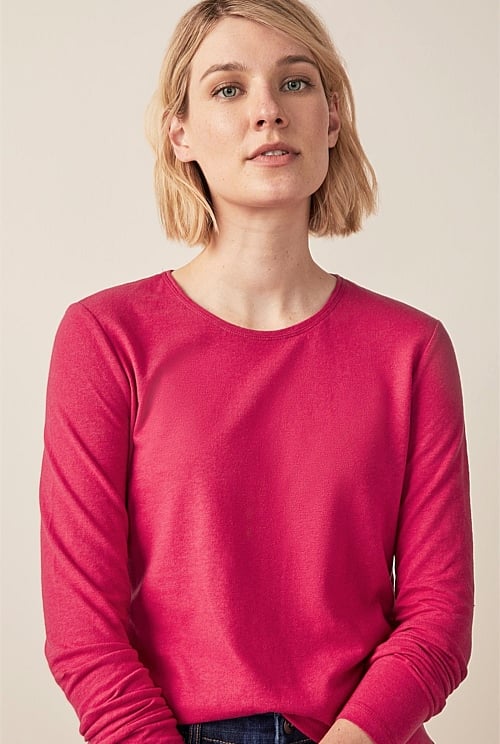 You can never have too many t-shirts. Our linen-cotton style is perfect for layering or wearing alone for a casual aesthetic, with long sleeves and a round neck. Available in a range of colours this season so there's one to go with all your outfits.