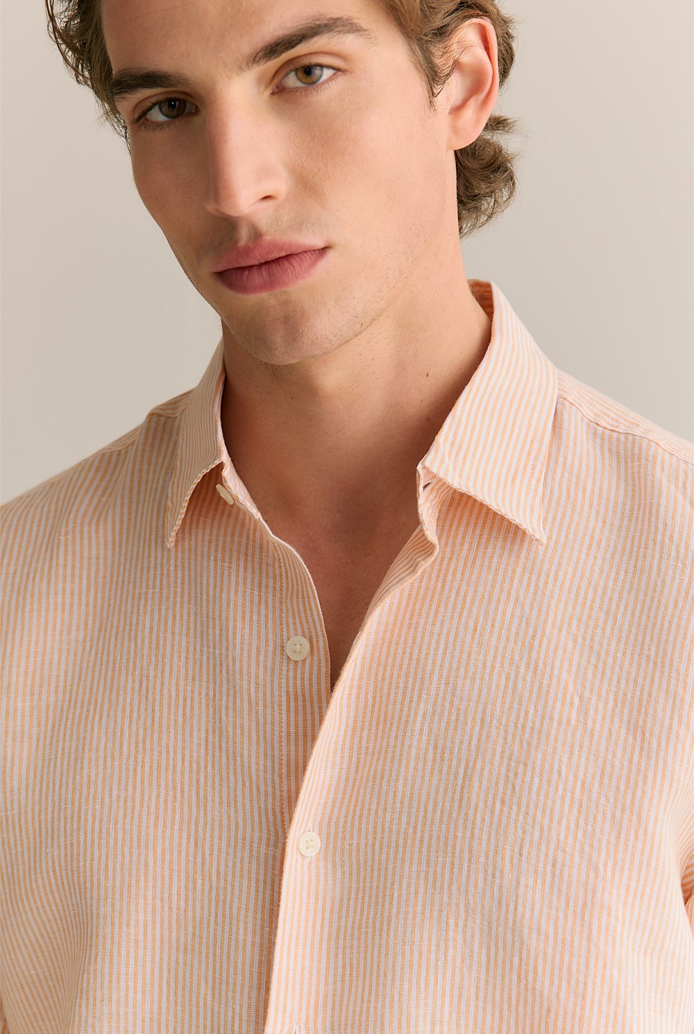 Effortlessly versatile, this short-sleeved shirt is woven from fine-striped natural linen for a comfortable and breathable fit.