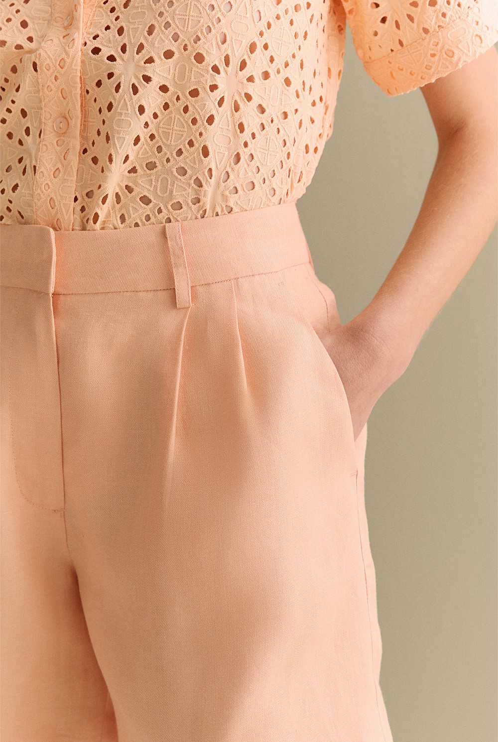 Made from premium French linen in a twill weave, this short is tailored with a high waist and crisp pleats for refined summer style.