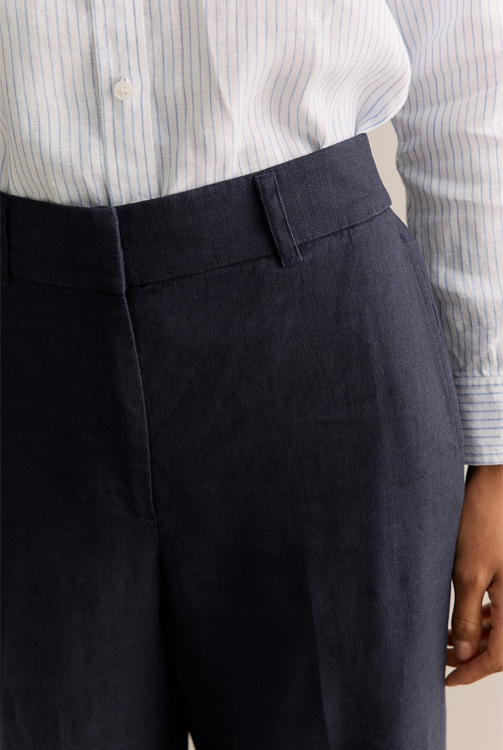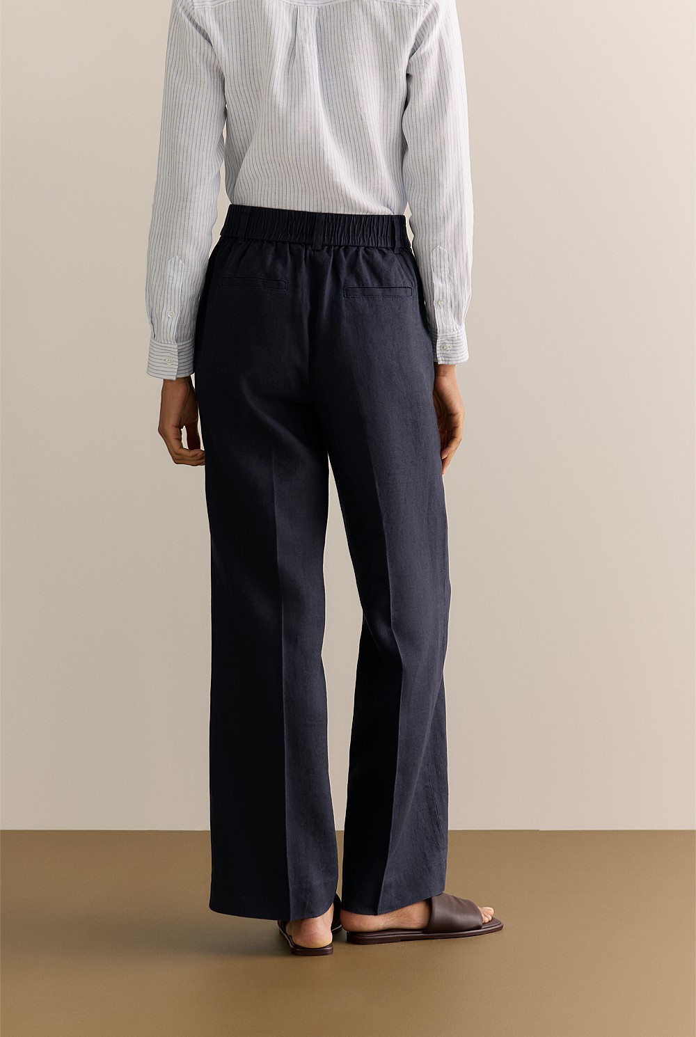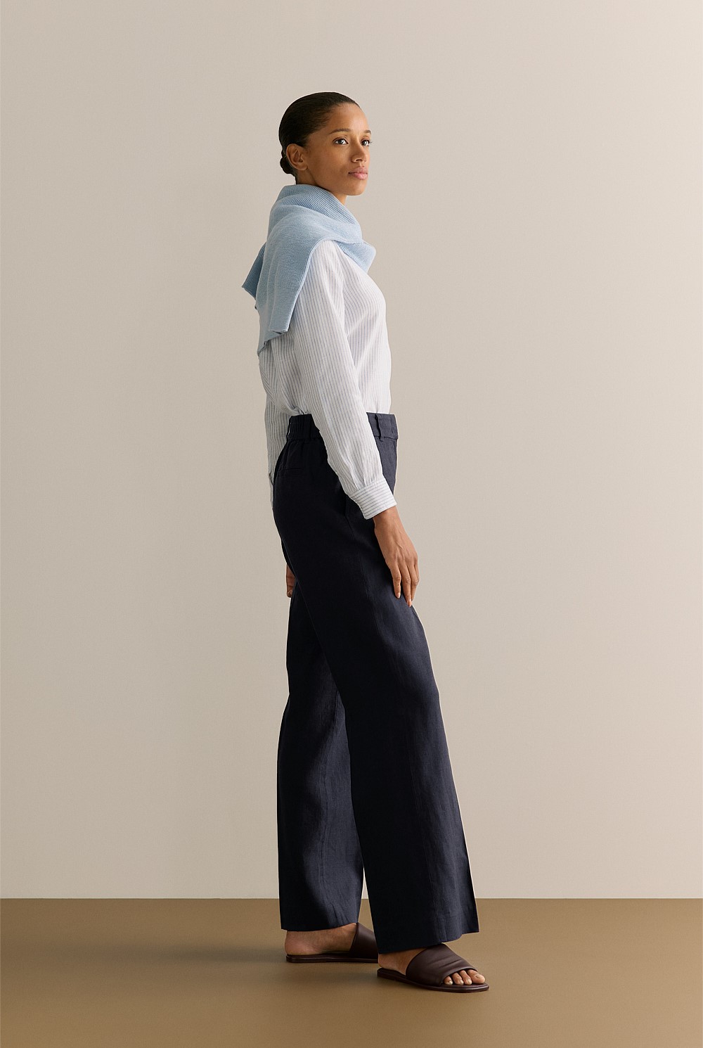 Effortlessly balancing smart and casual, these linen pants are tailored with a wide leg and partial elasticised waist for comfort.