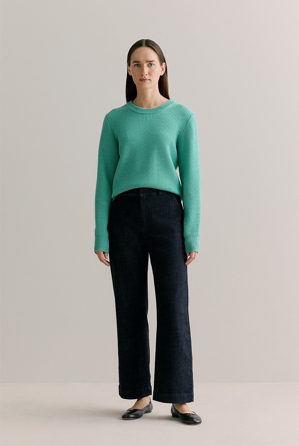 Knitted from extrafine merino wool, this mid-weight crew features a delicate pointelle stitch along the sleeve. A refined take on everyday knitwear.