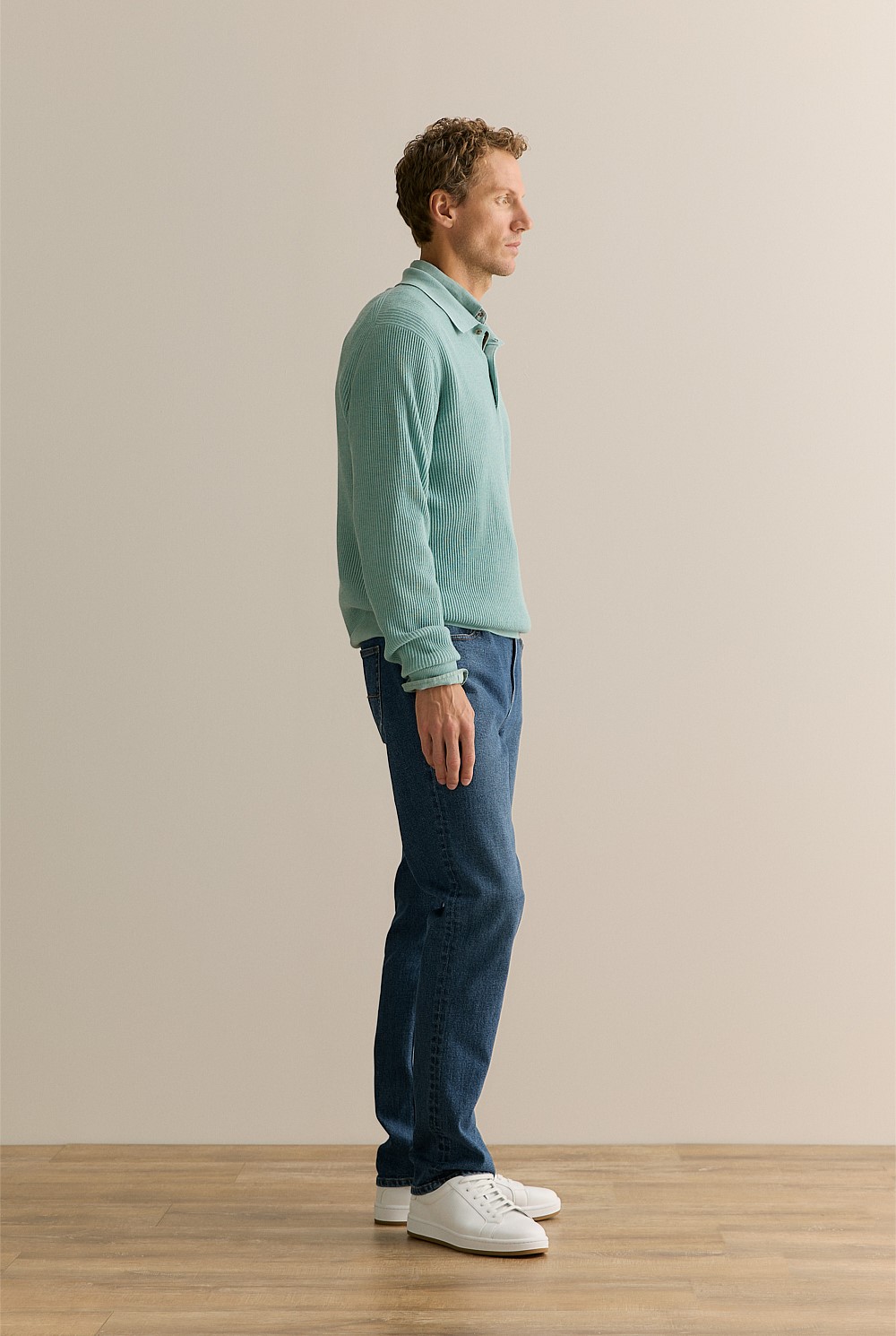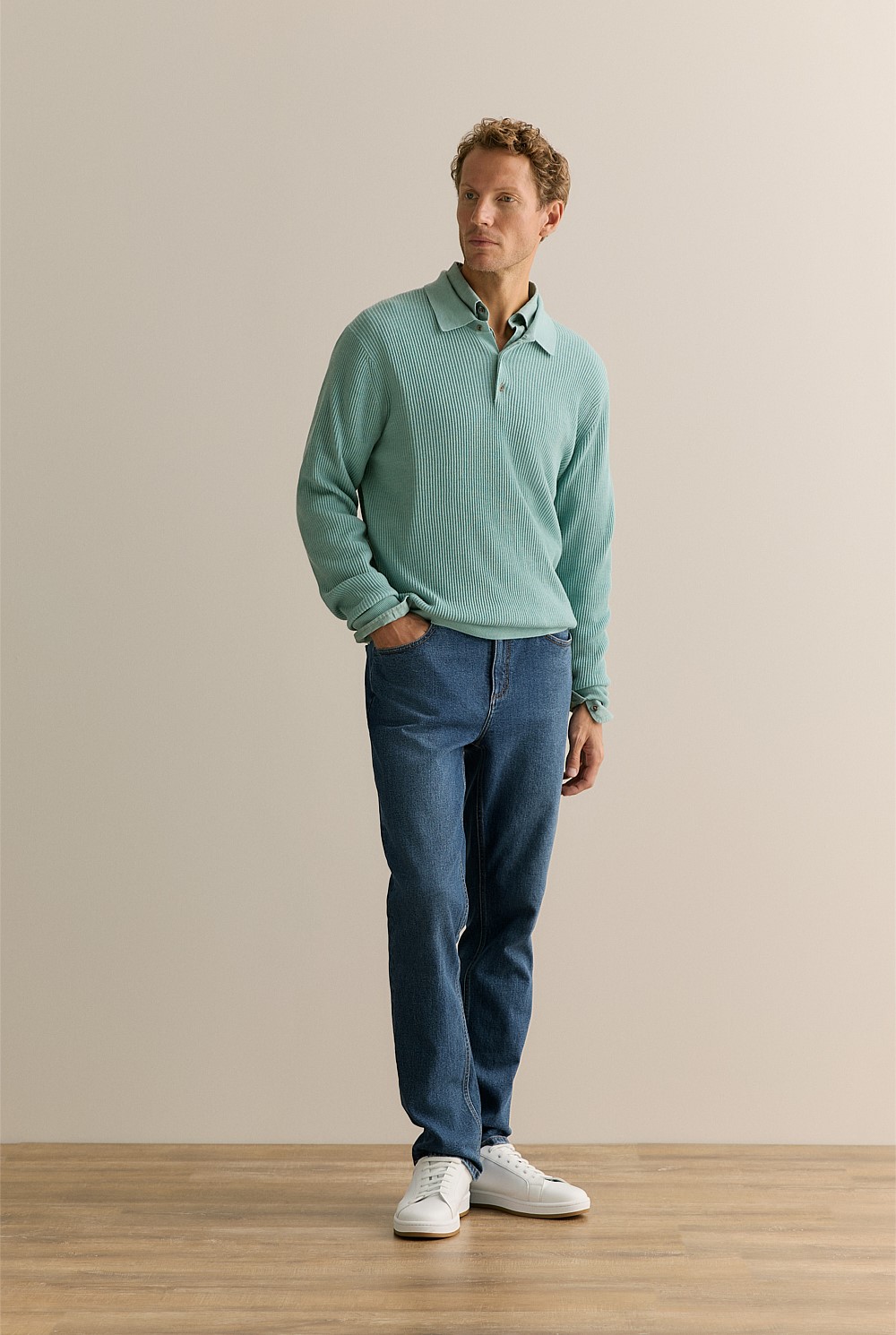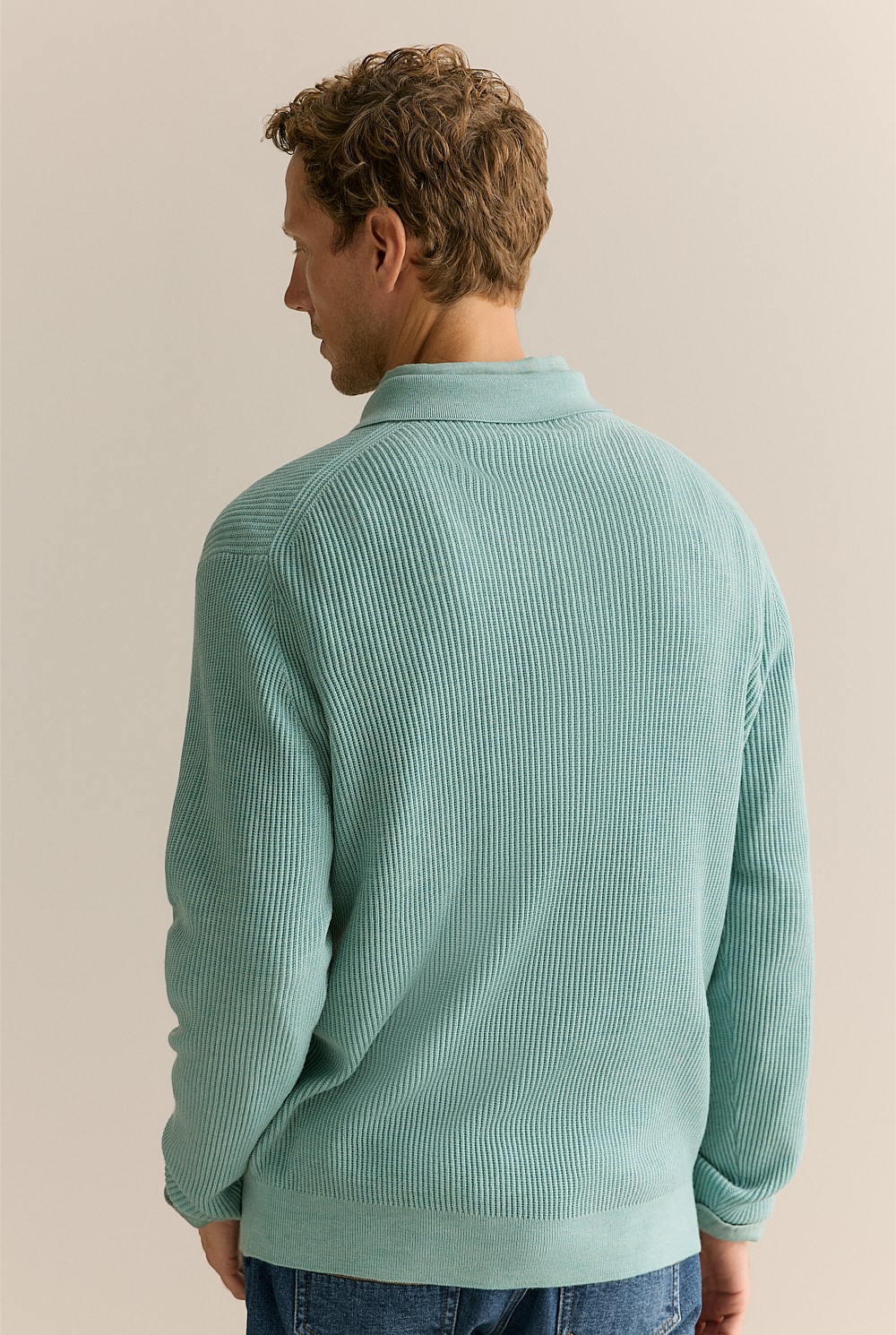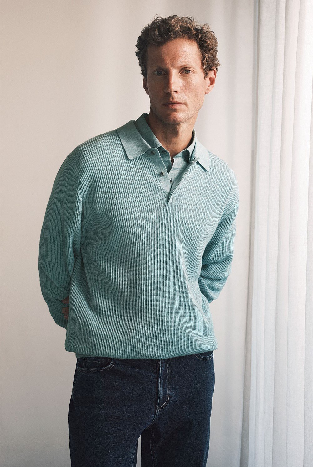 A refined take on the classic polo, this knit is crafted from pure merino wool with a ribbed texture. Designed for layering or wearing solo, it's finished with a button-through placket and rib trims.
