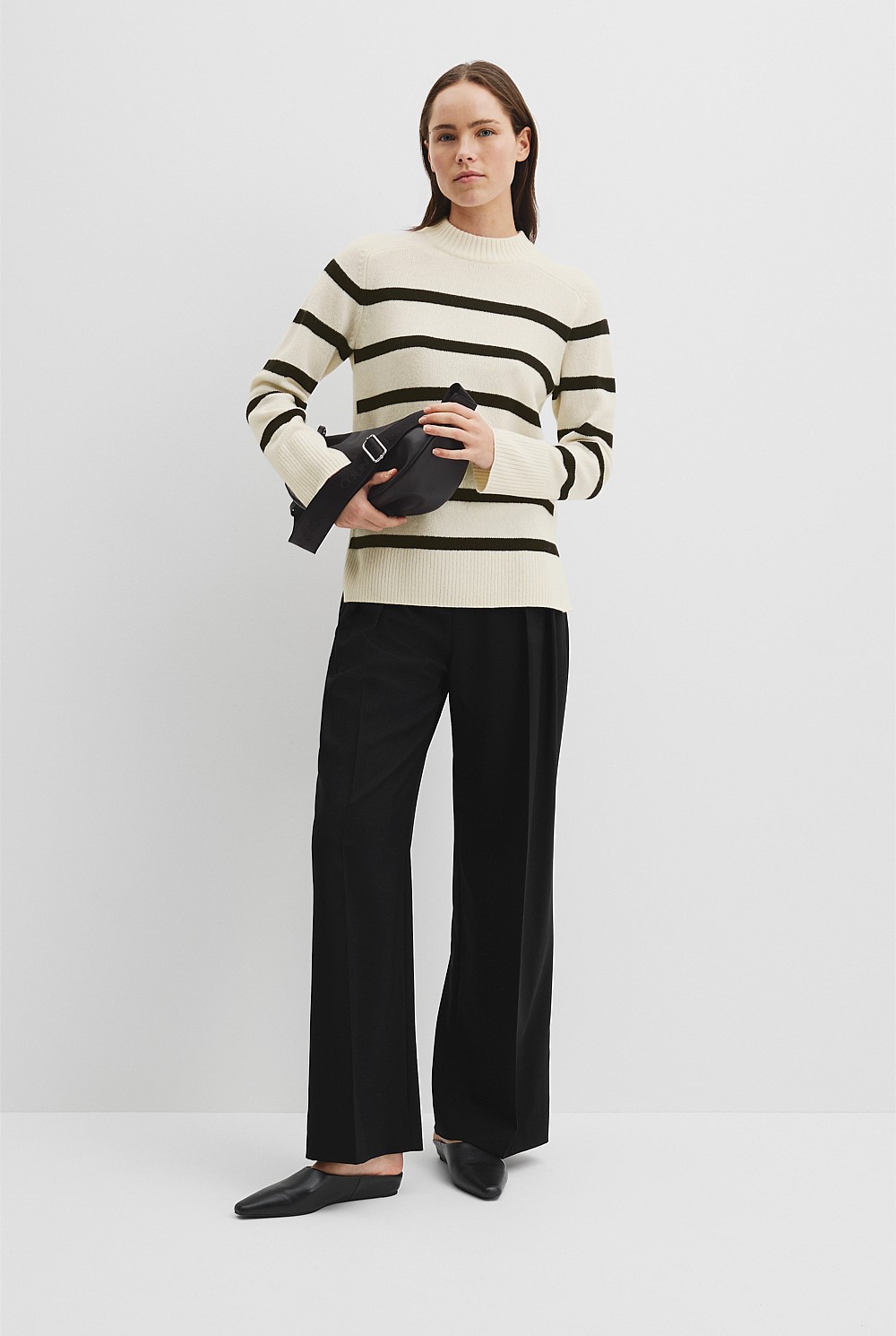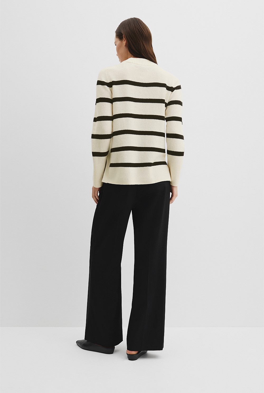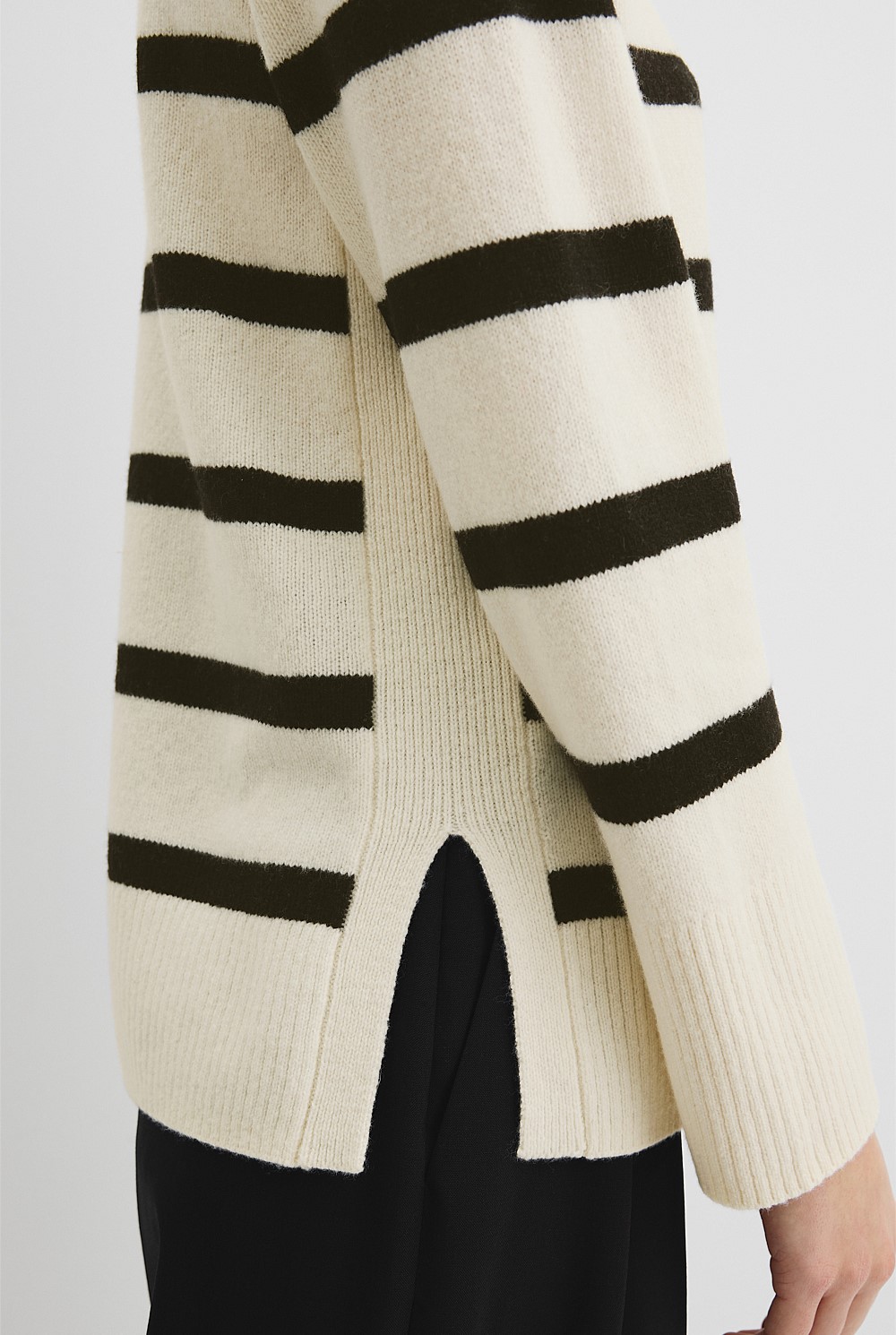 A timeless staple, this knit is made using luxuriously soft, extra-fine Merino wool. This longline style features a mock neckline, side split hemline and rib detailing on the neck, hem and cuff.