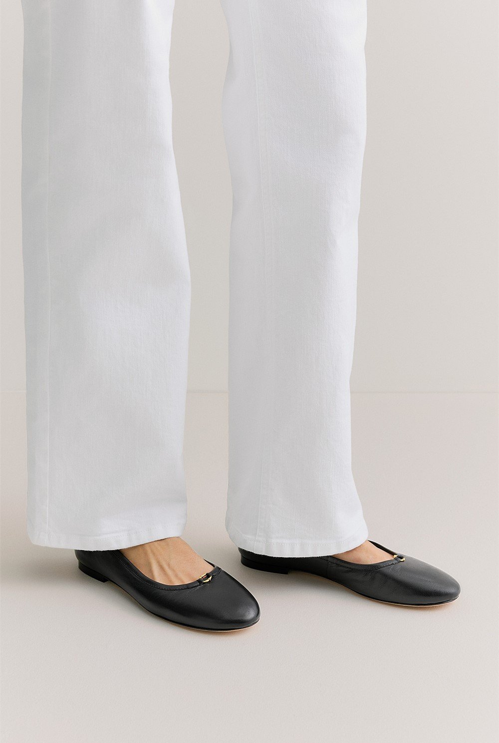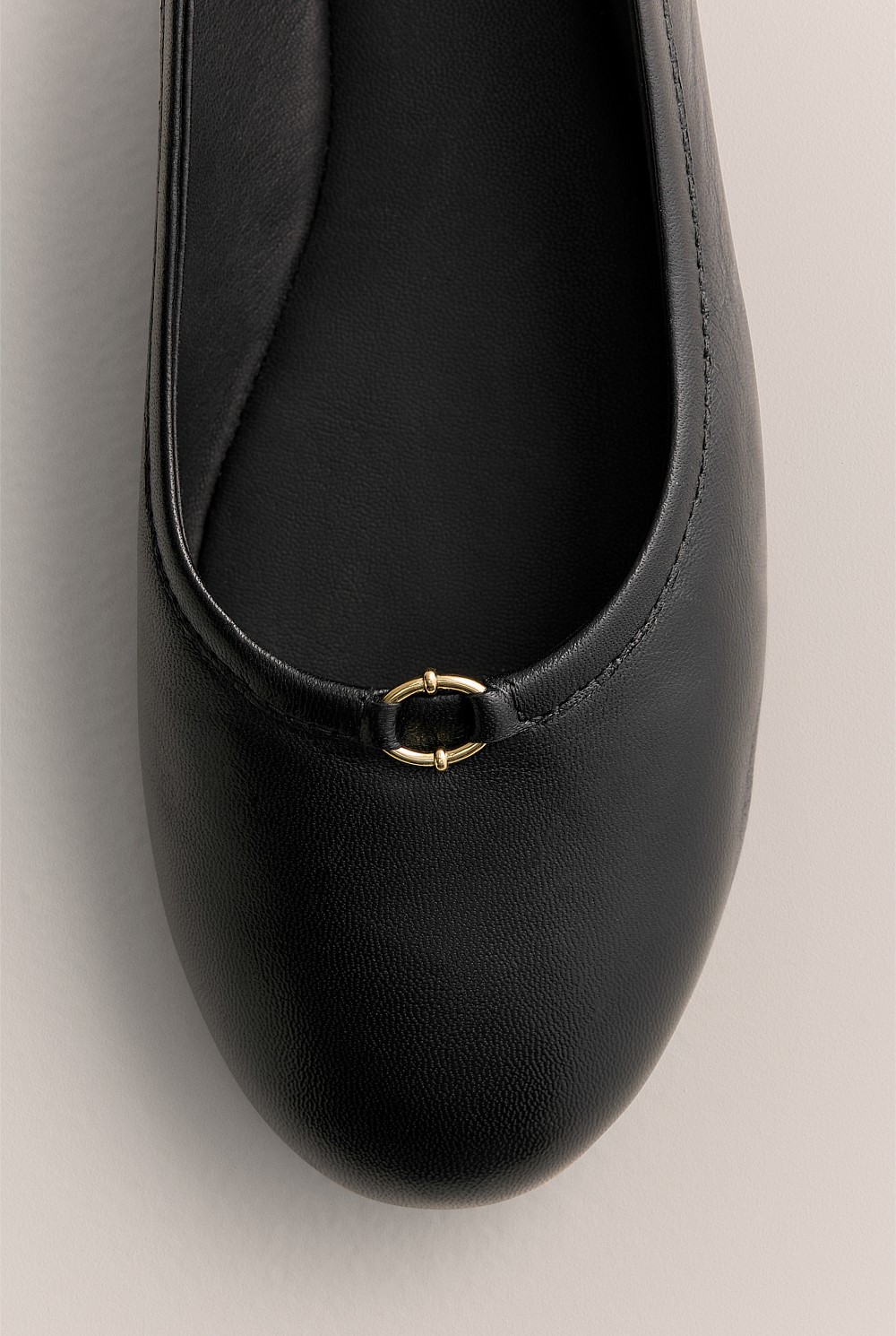 The Mirima leather ballet flat features a rounded toe and subtle Signature Link chain detail. Leather lined, the cushioned insole ensures lasting comfort.