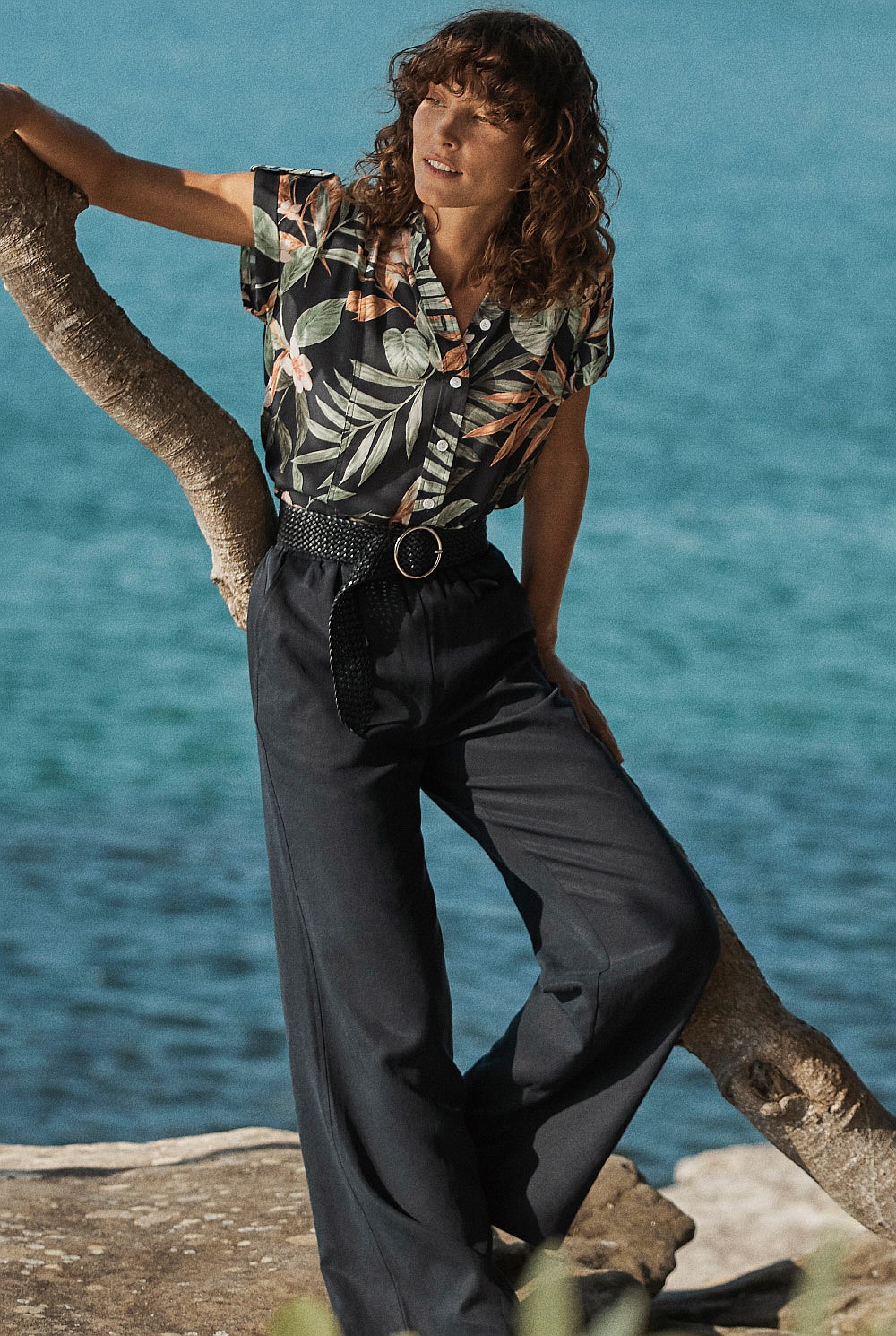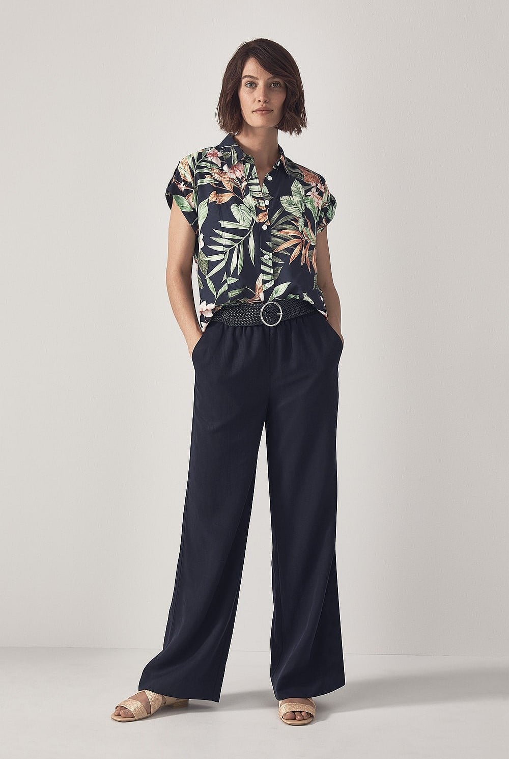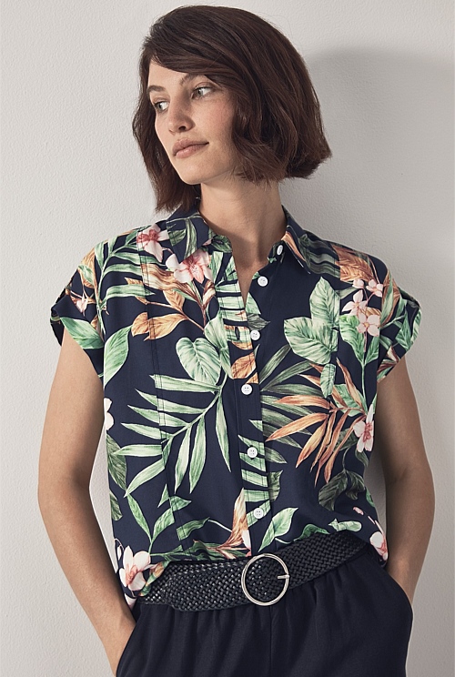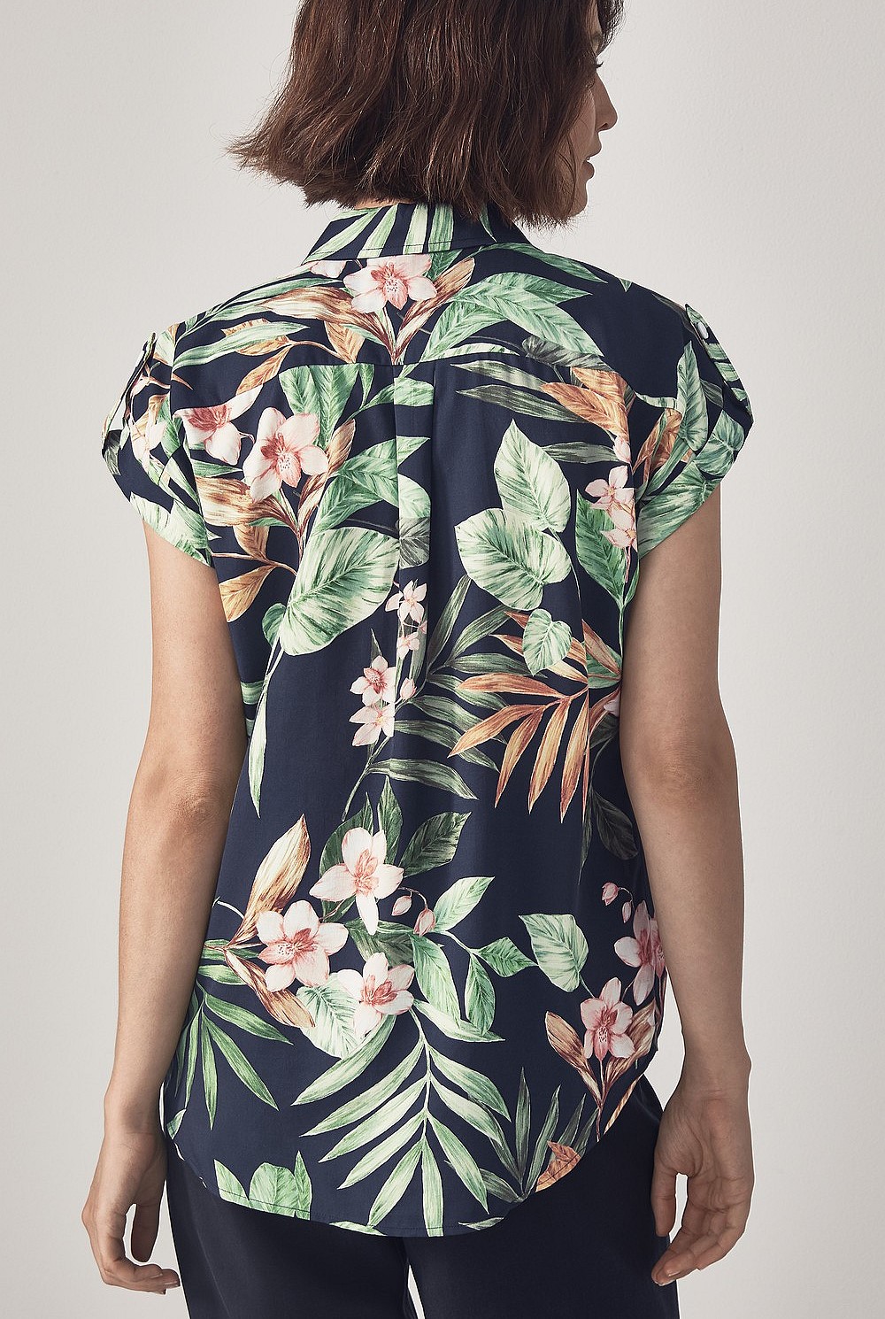 Add interest to all your seasonal separates with this beautiful botanic print shirt, crafted in modal with a button-down construction and short cuffed sleeves. Refined in rich navy and ivy tones, it's sophisticated enough for work, then easily dressed down for the weekend.