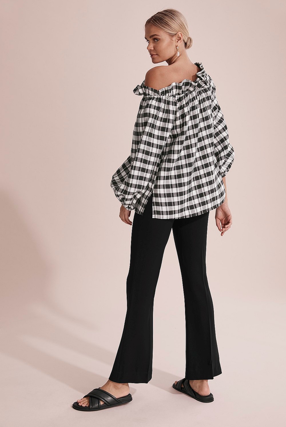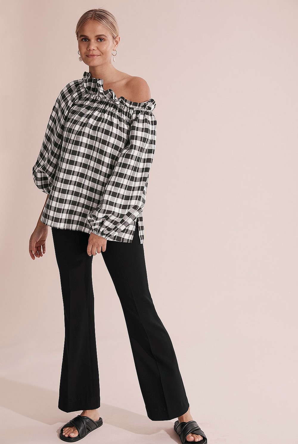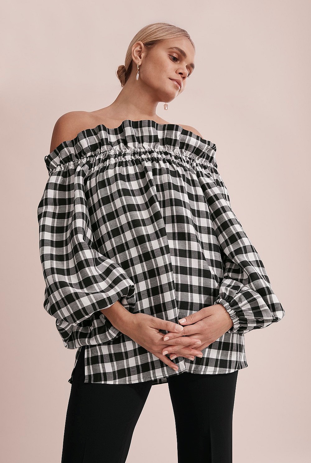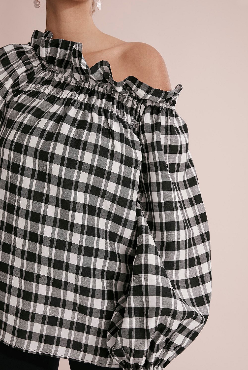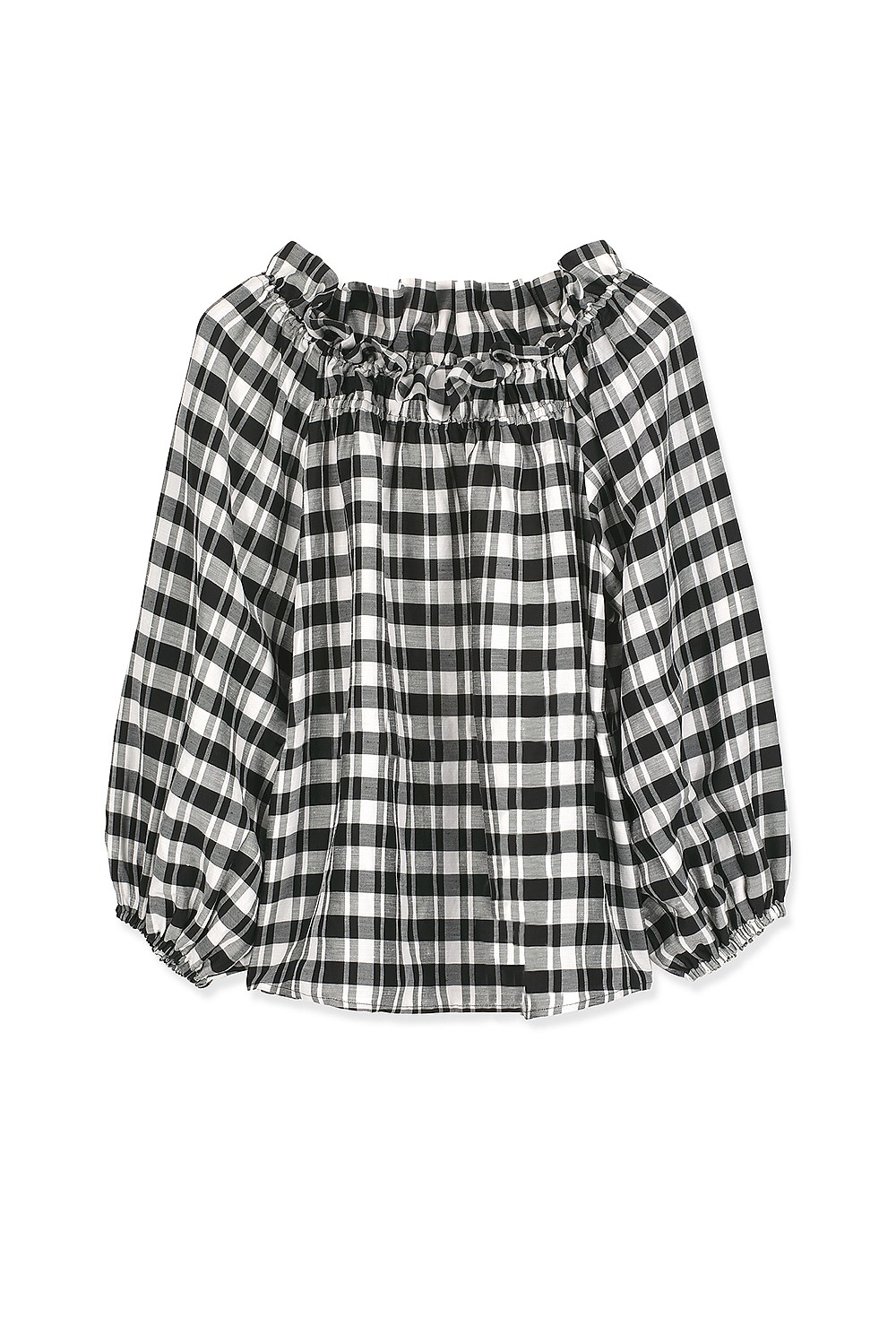- Elasticated neckline with frill