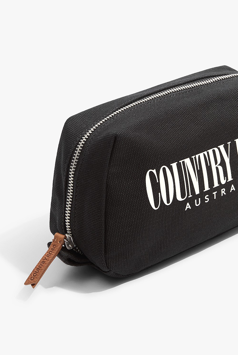 - Zip closure with leather trim