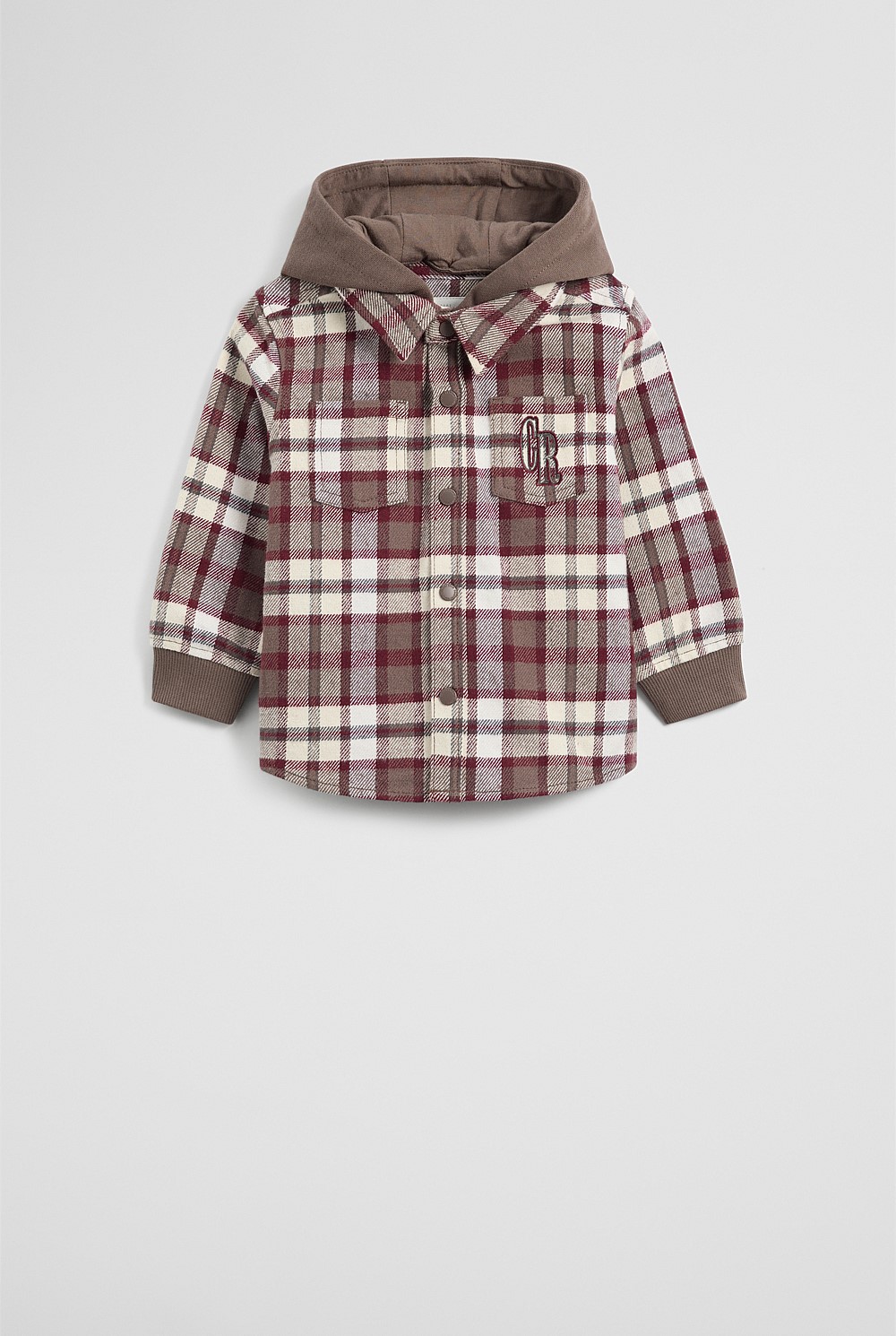 Made using organically grown cotton, this hooded shirt is a cosy layer for cooler days. It features a button-through front, checked pattern and a contrast jersey hood.