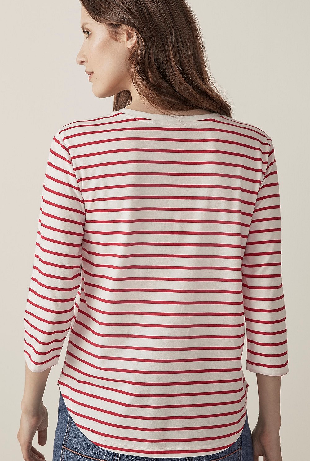 Pima Cotton Stripe 3/4 Sleeve T-Shirt