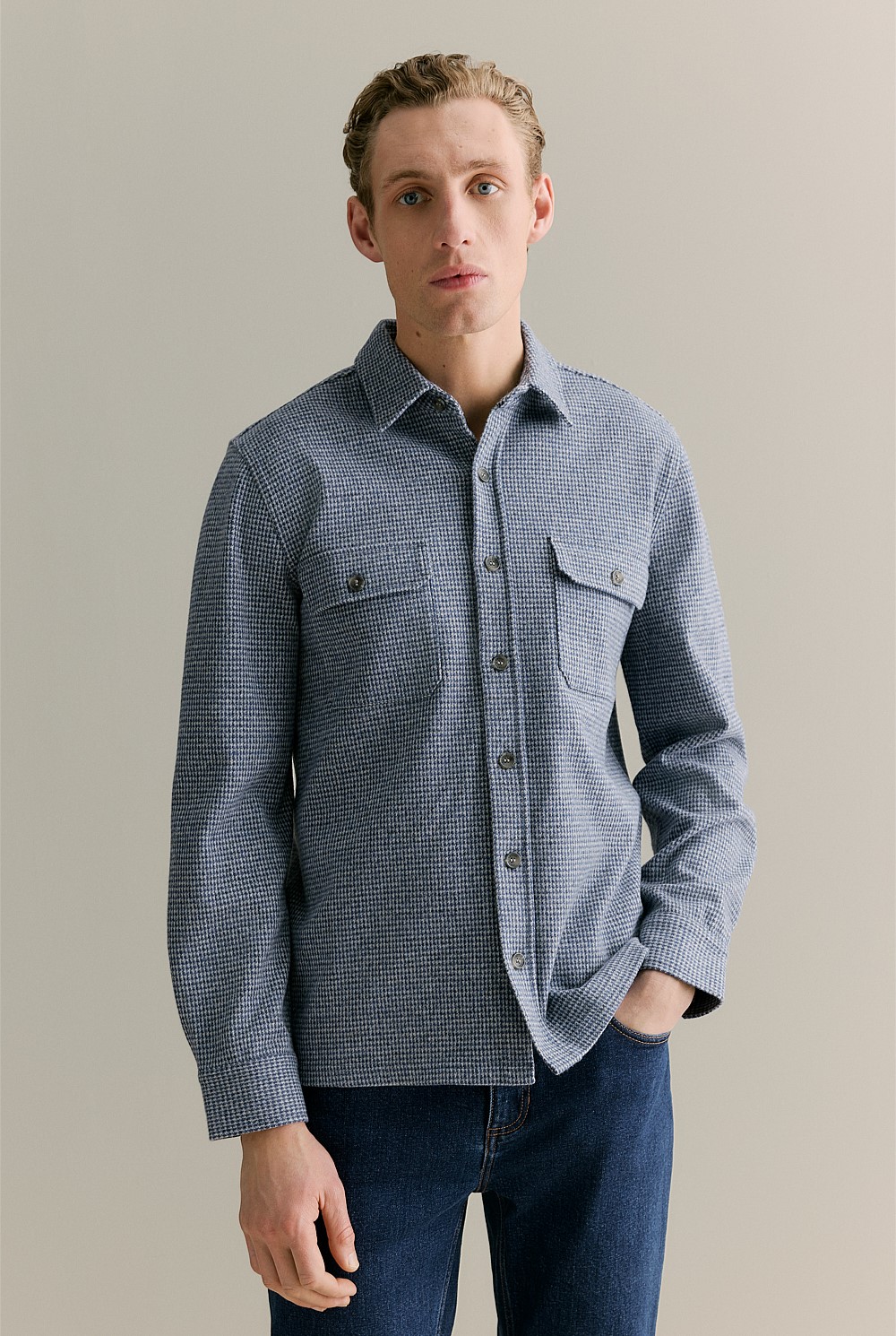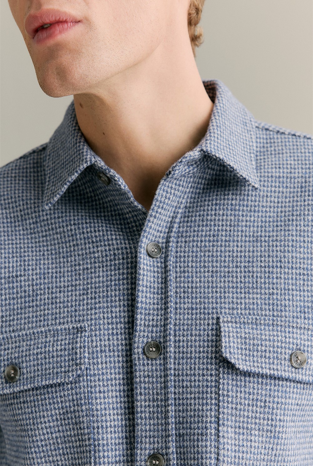 Crafted from a heavyweight cotton and wool jacquard, our puppytooth overshirt is designed with twin pockets and finished with mock horn buttons.