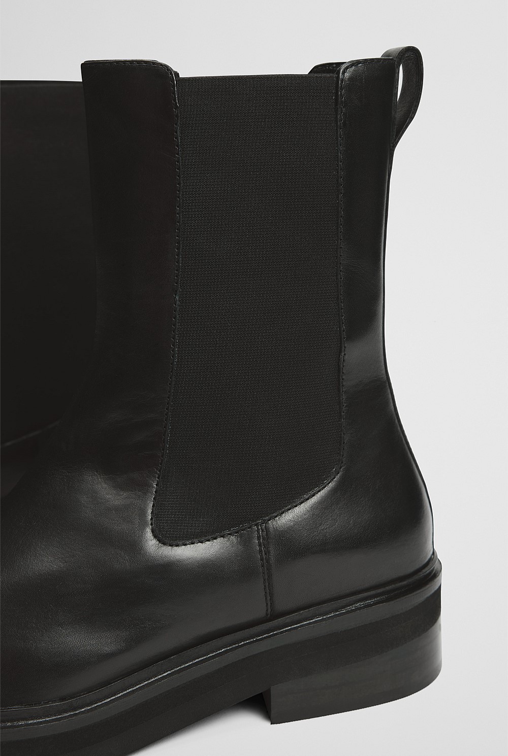- Elastic side gusset, leather pull tab