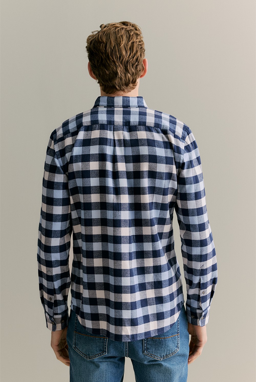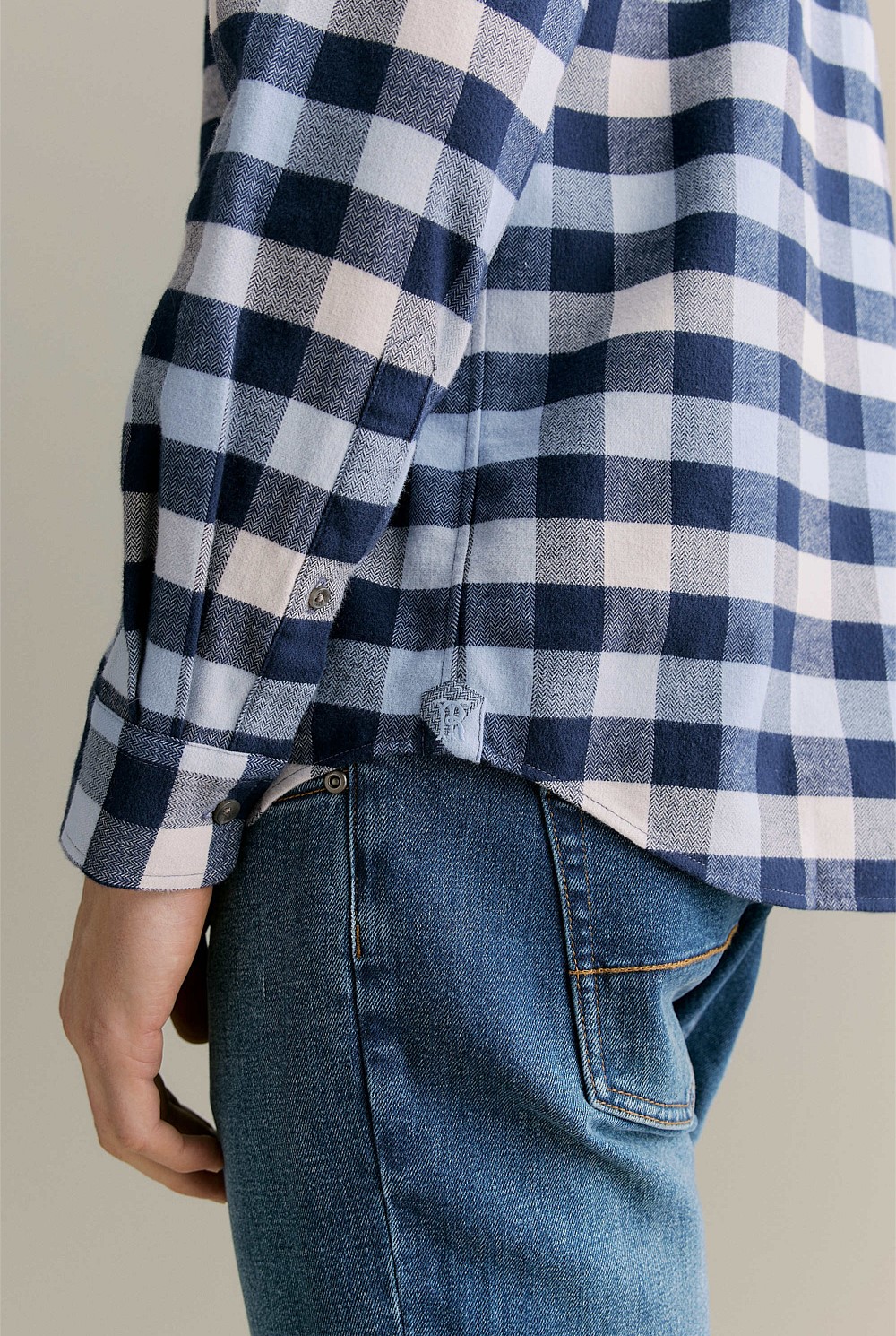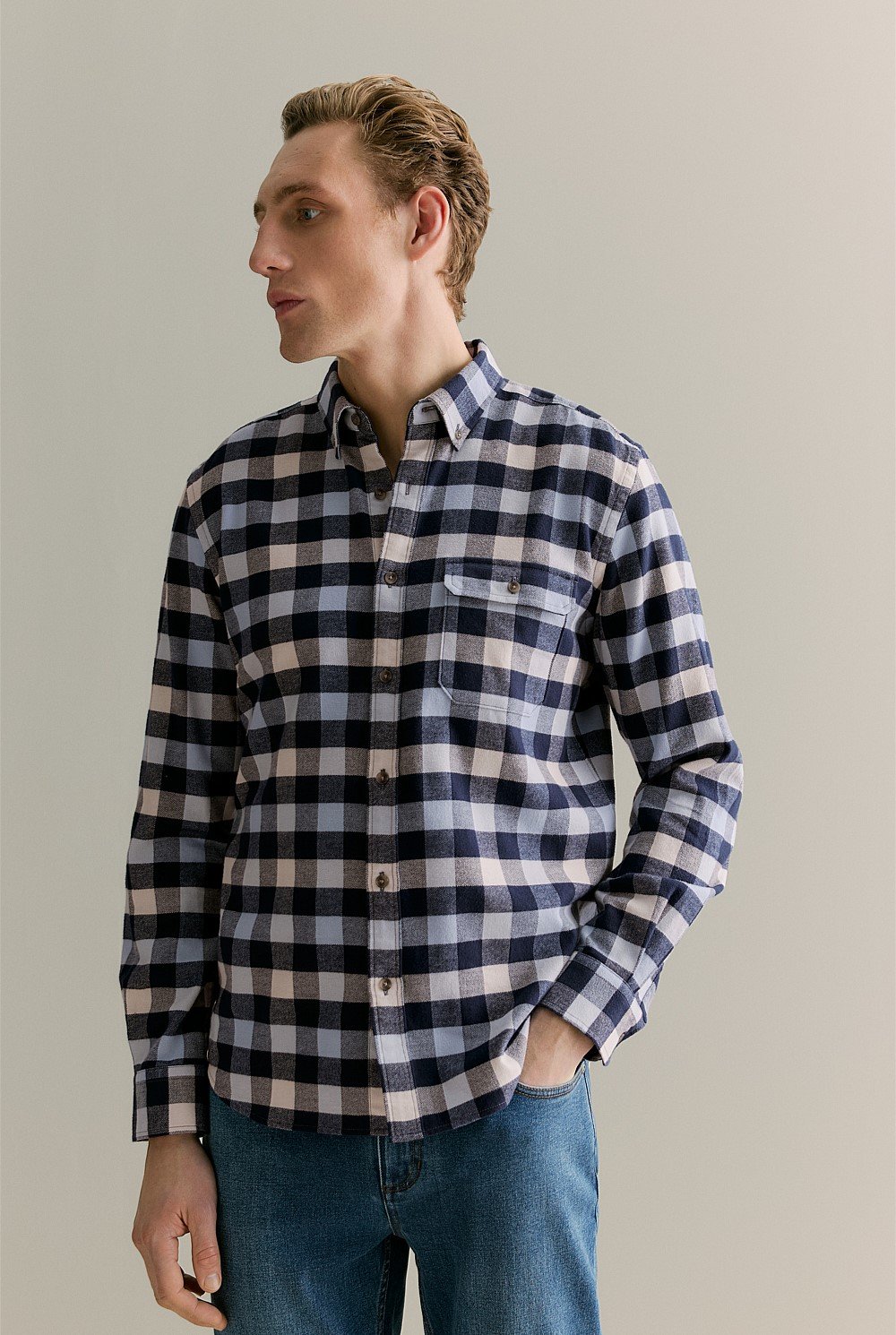 A soft brushed buffalo check shirt, cut in a regular fit and finished with practical detailing.