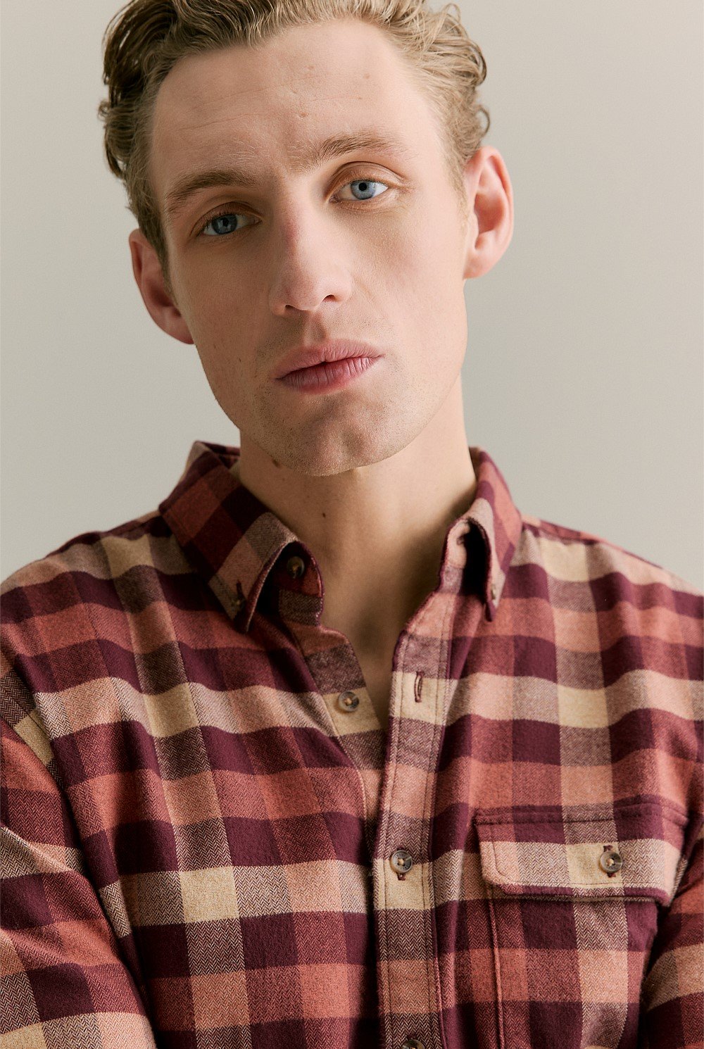 A soft brushed buffalo check shirt, cut in a regular fit and finished with practical detailing.