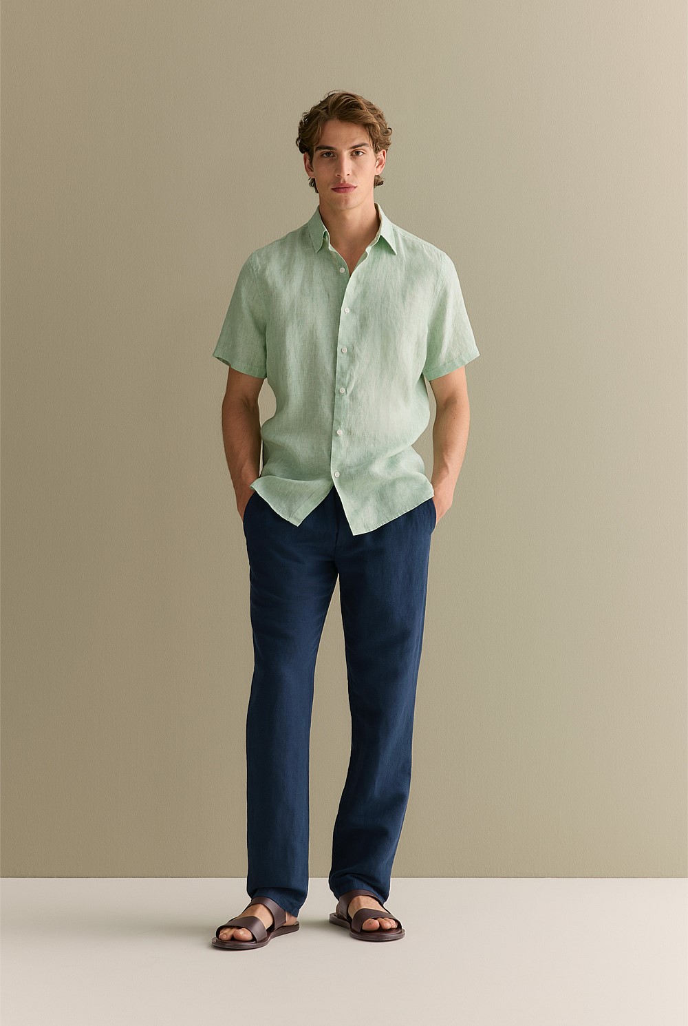 Regular Fit Delave Linen End on End Short Sleeve Shirt