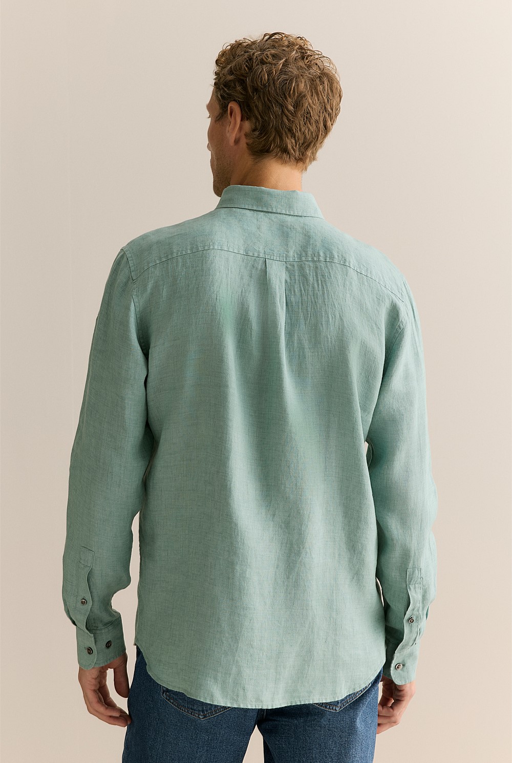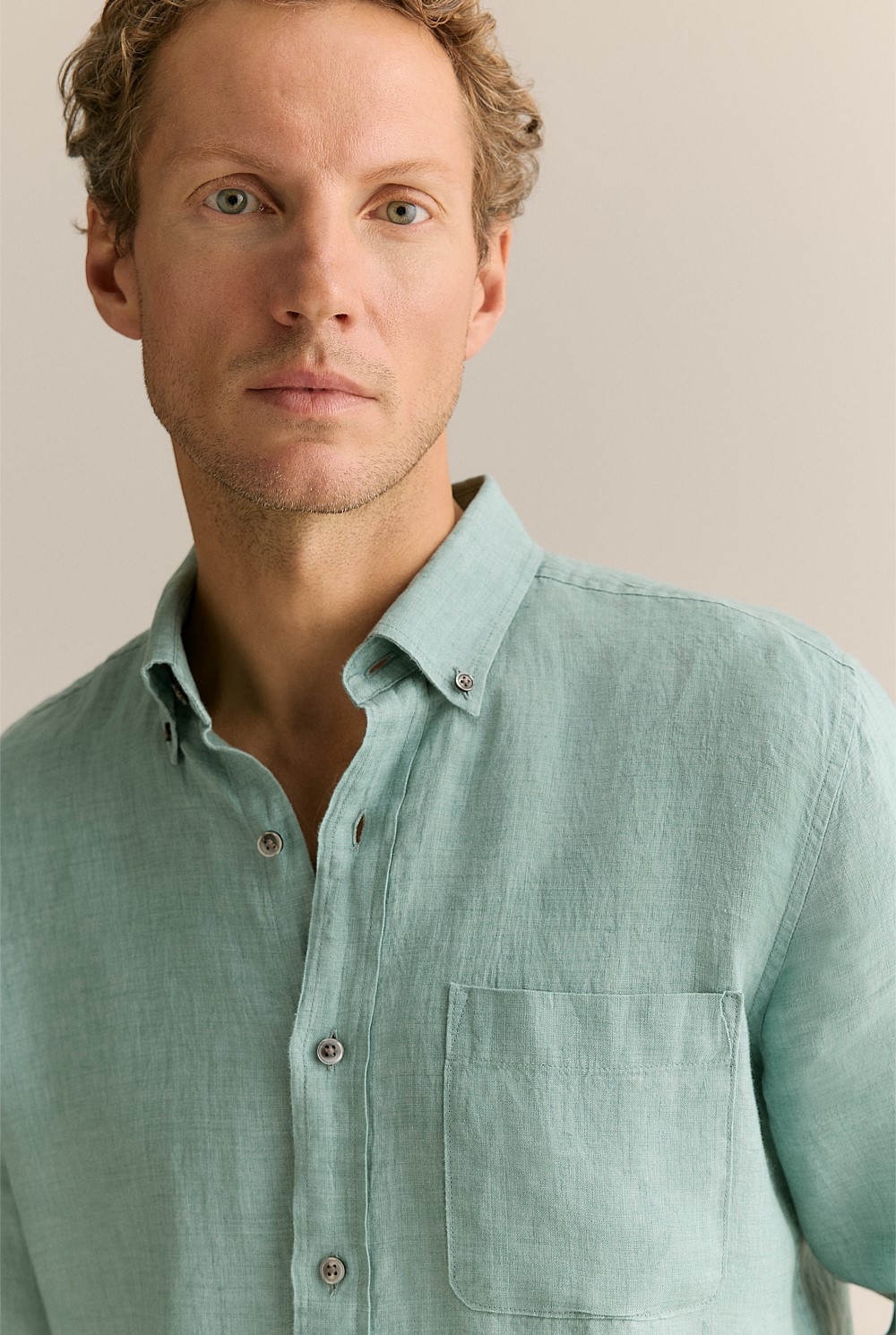 Crafted from French délavé linen, this shirt features a subtle variegated colour and a classic fit with a button-down collar.