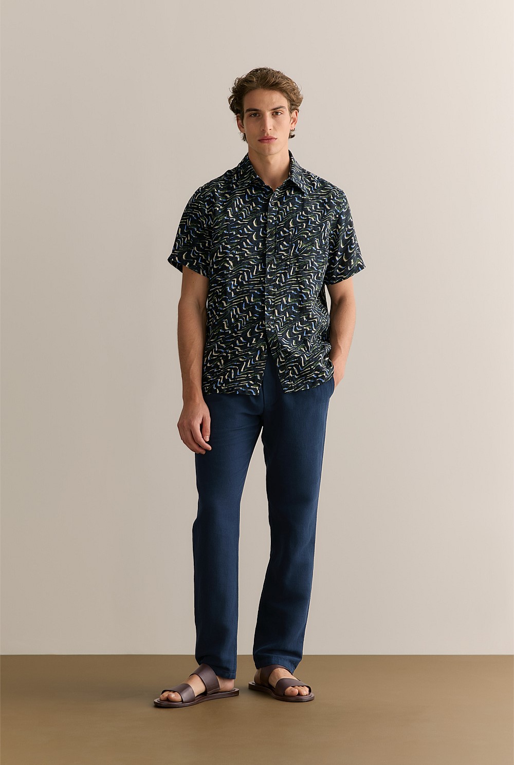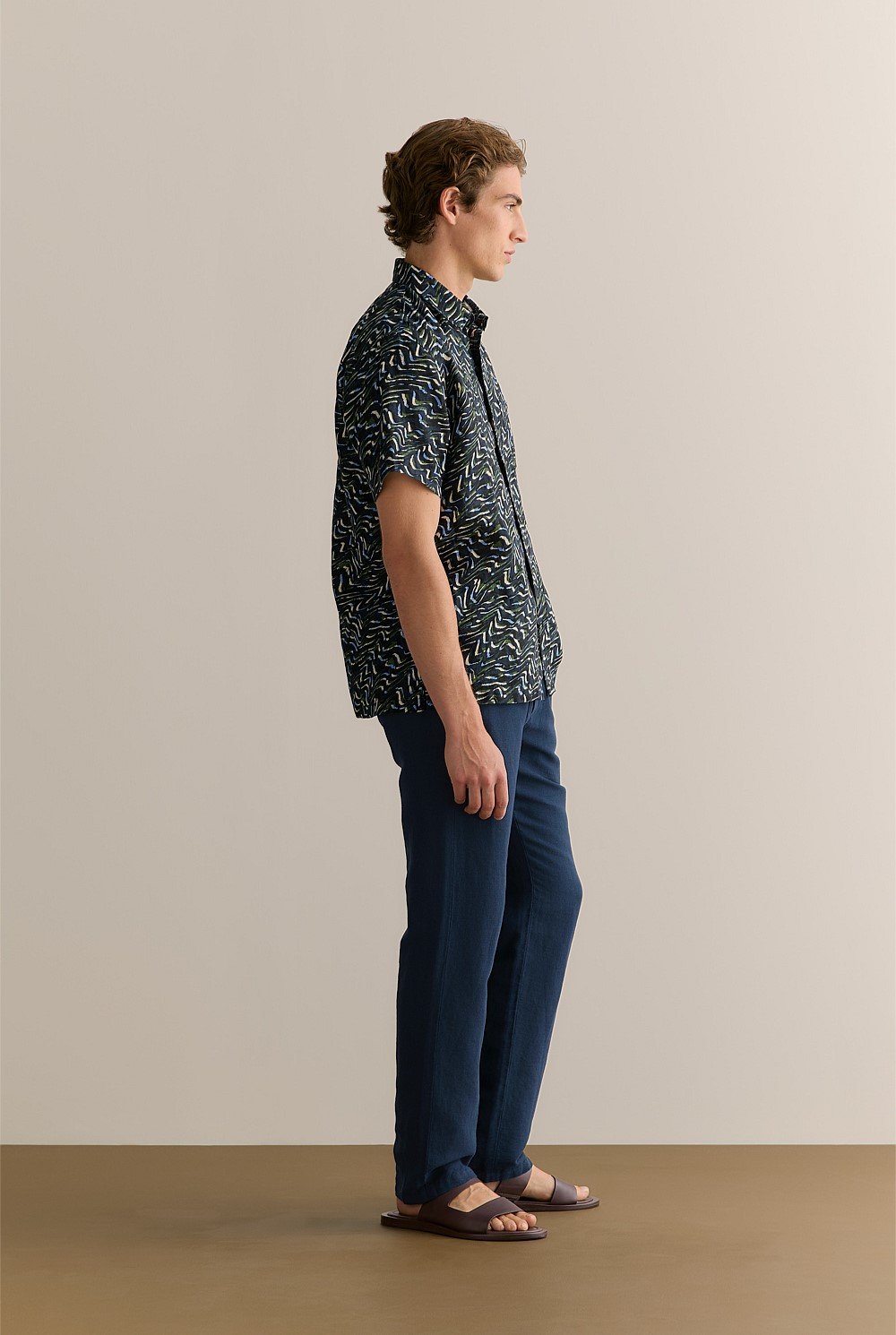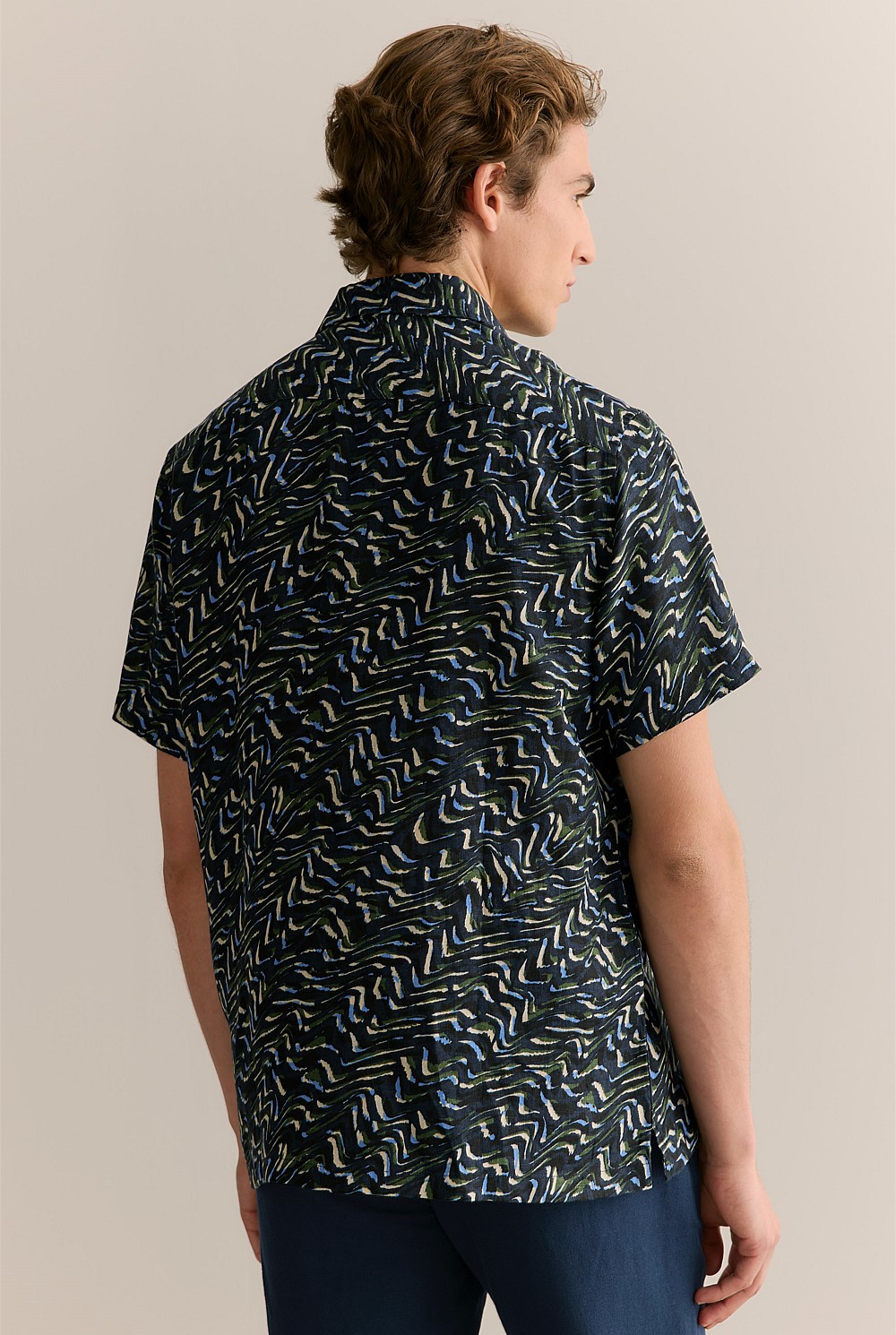 Regular Fit Linen Wave Print Short Sleeve Shirt