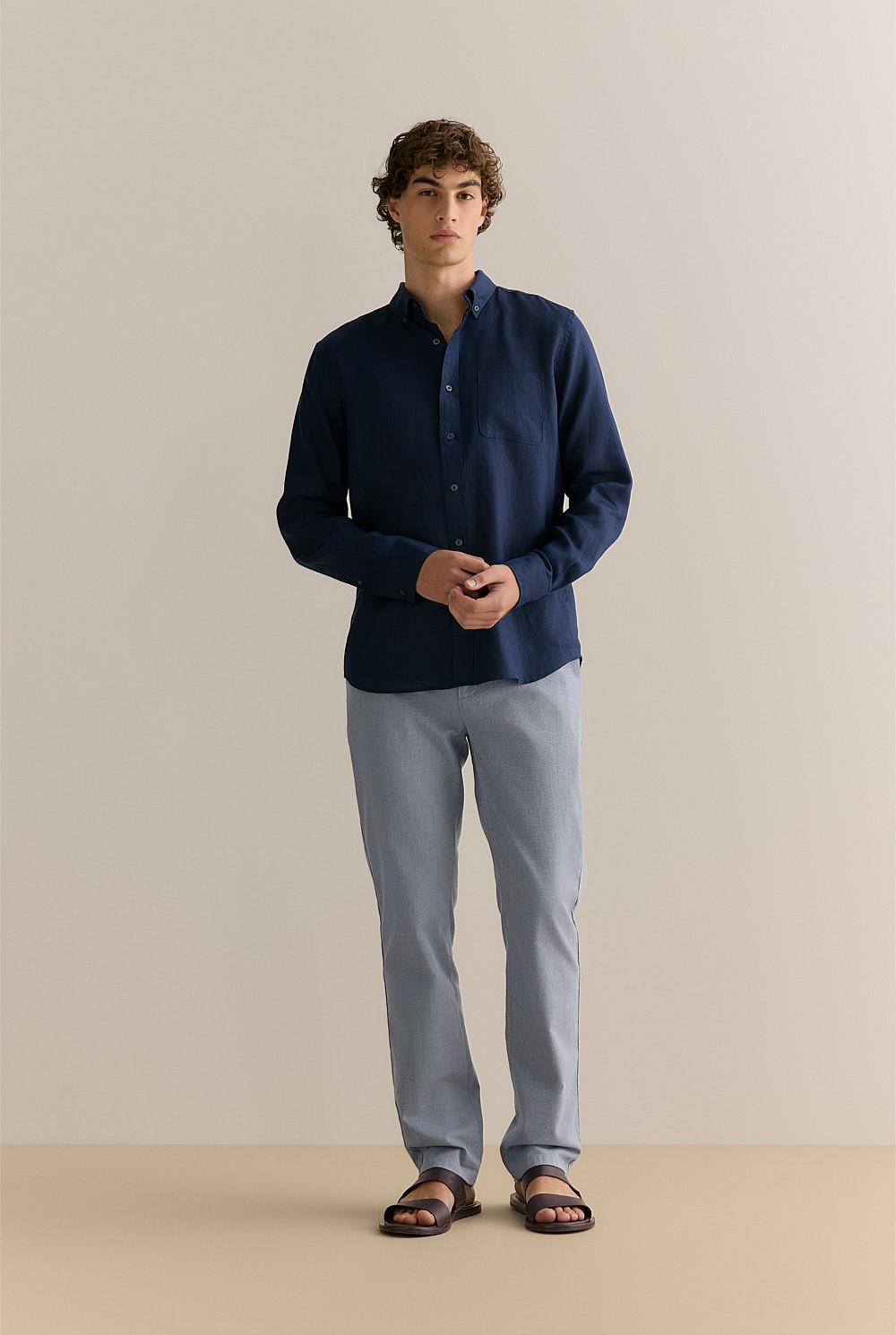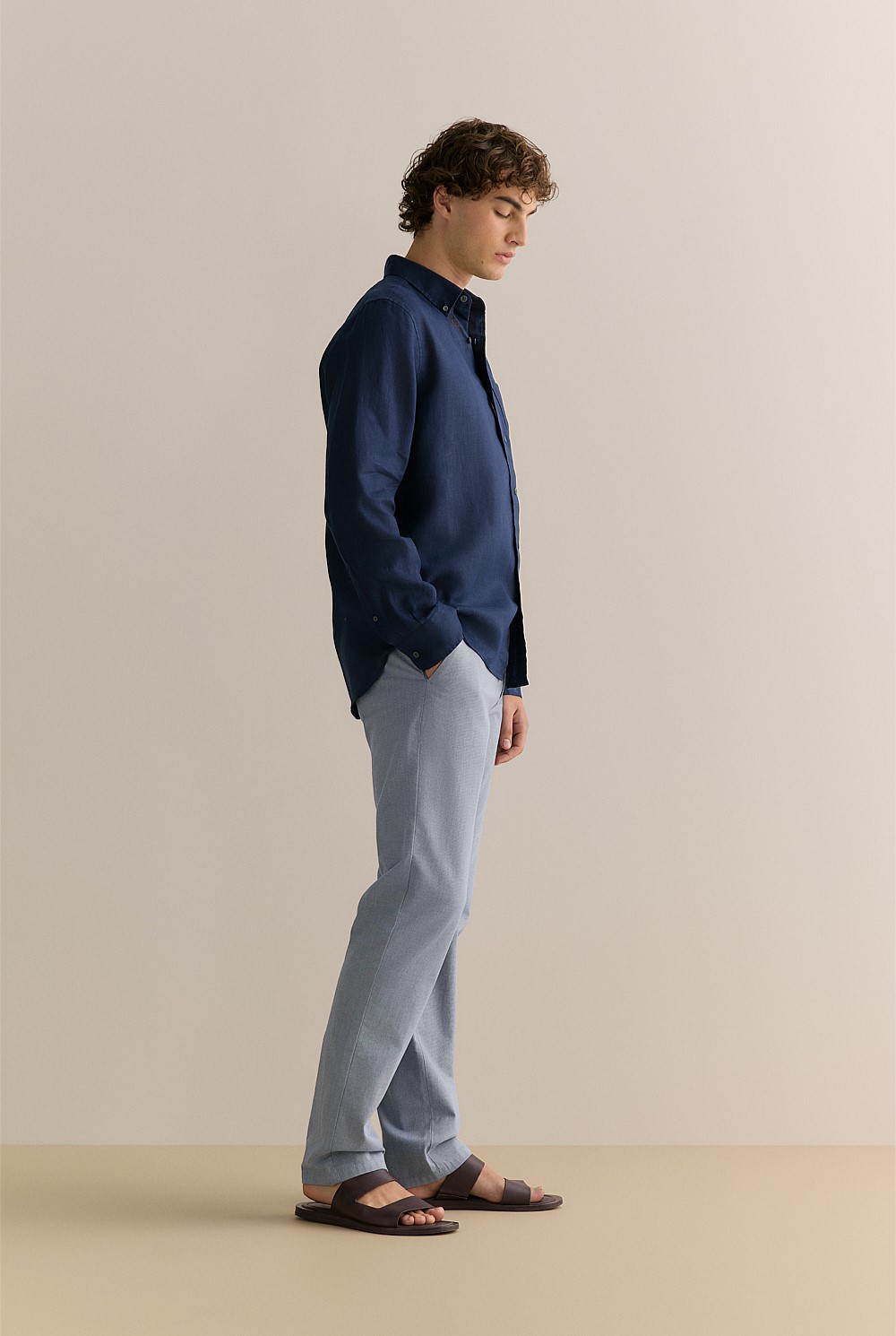 Our casual chino is crafted from breathable cotton dobby with light stretch. The yarn is dyed before weaving for a textured finish and premium feel.