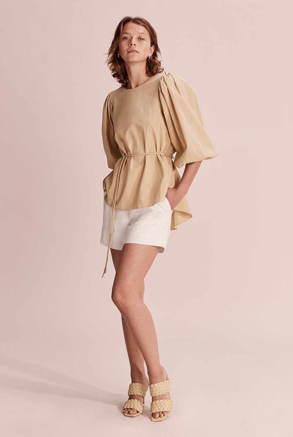 - Removable waist tie with toggles