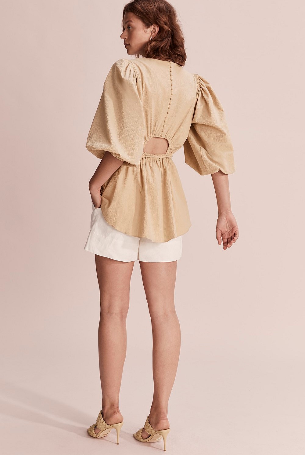 - Dome-shaped buttons at centre back