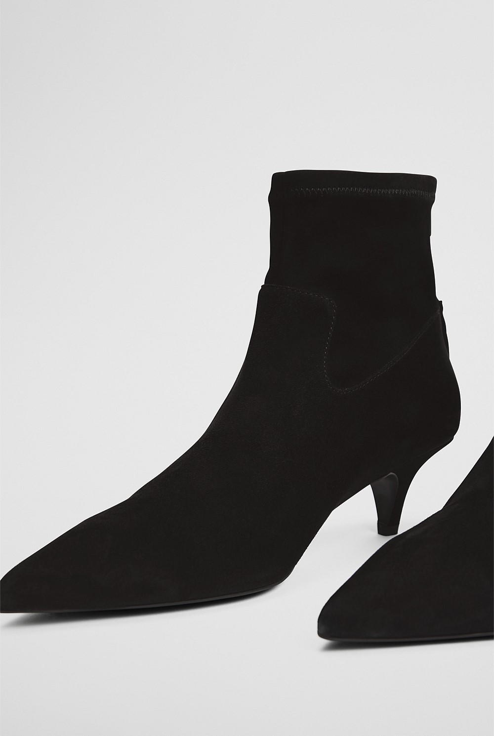 - Suede-wrapped kitten heel