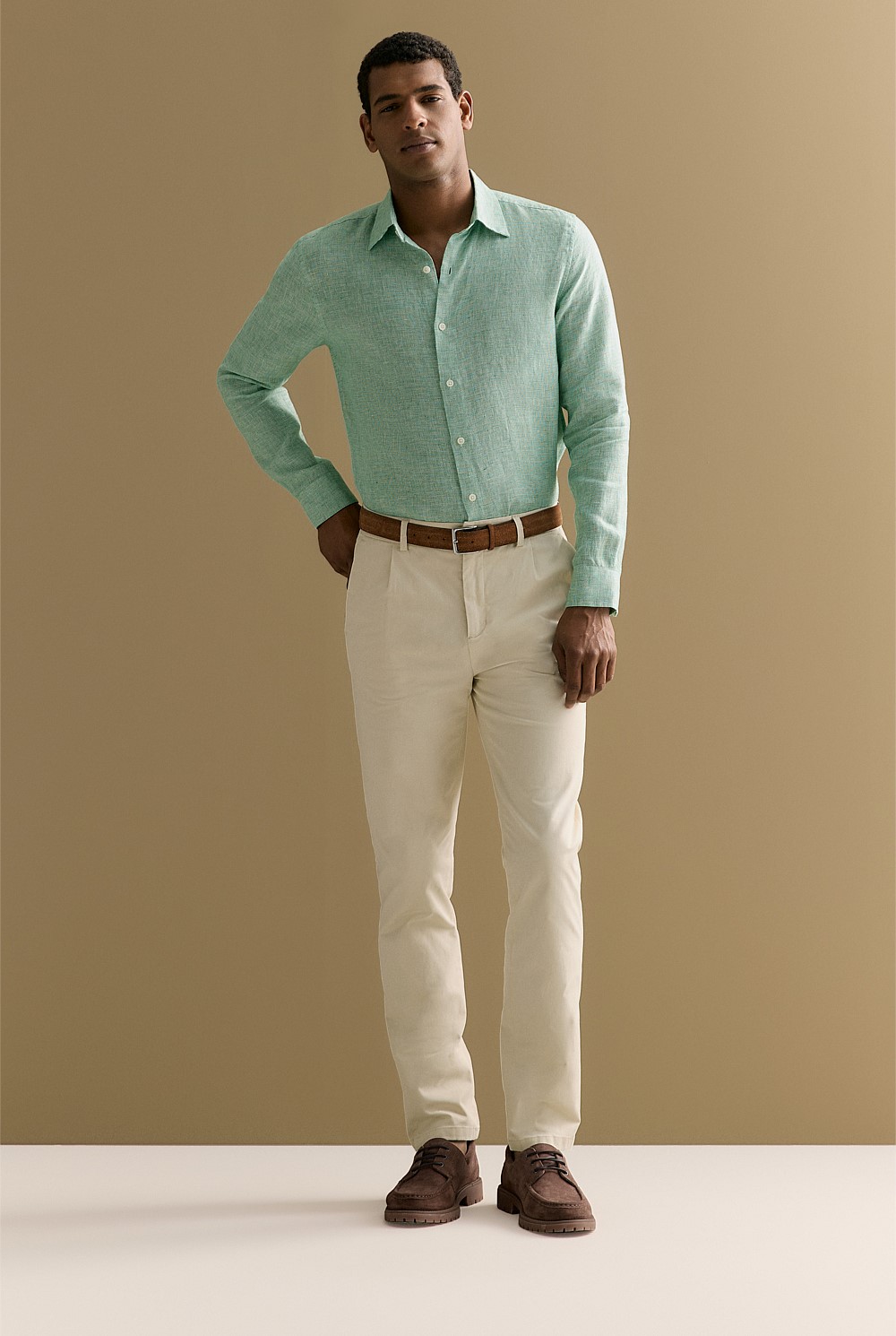 Tailored Fit Linen Piece Dyed Long Sleeve Shirt