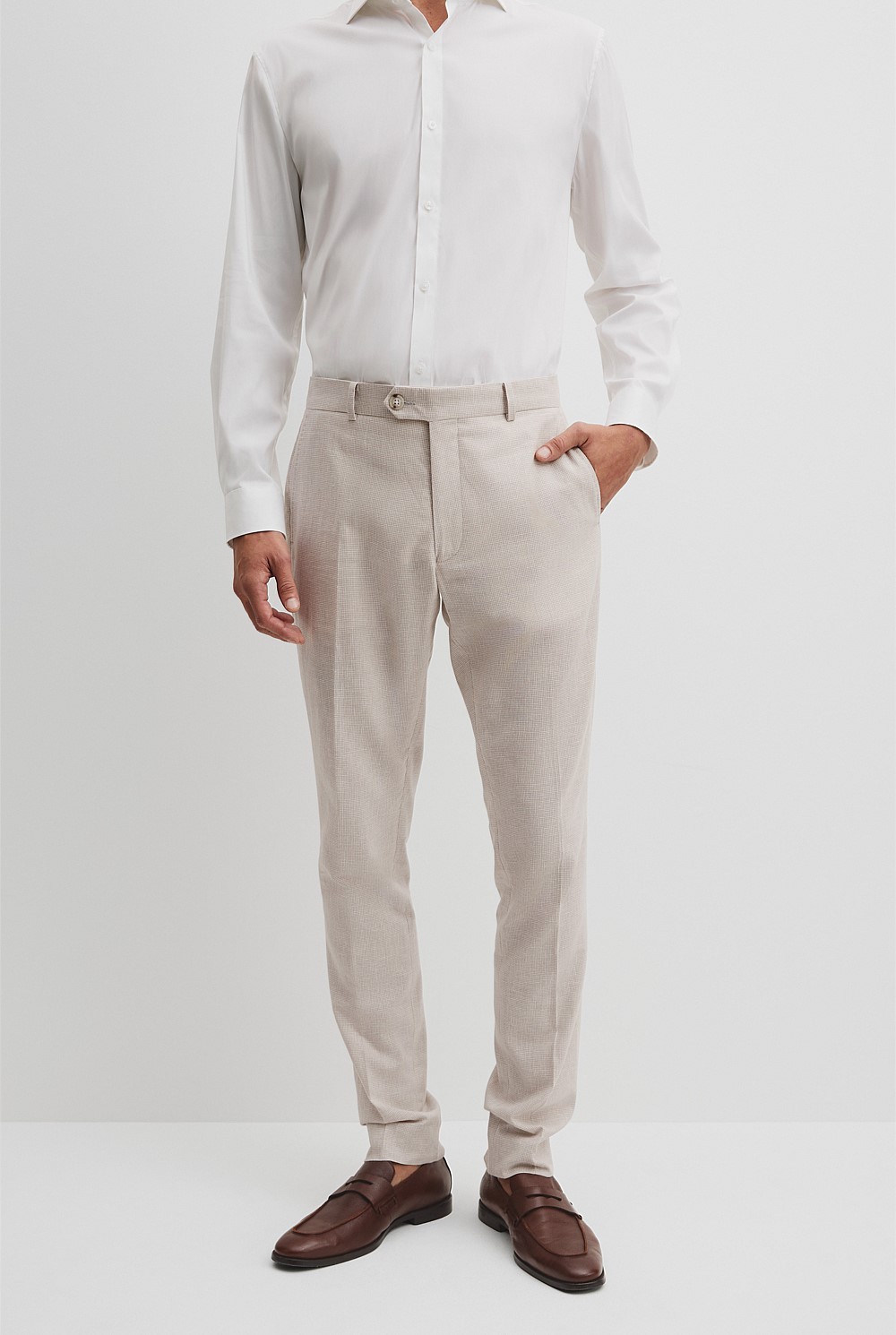 Cut in a tapered fit it features front slant pockets, single back welt pockets and a mitred waistband designed with extra fabric in the seams to allow the garment to be altered if required.
