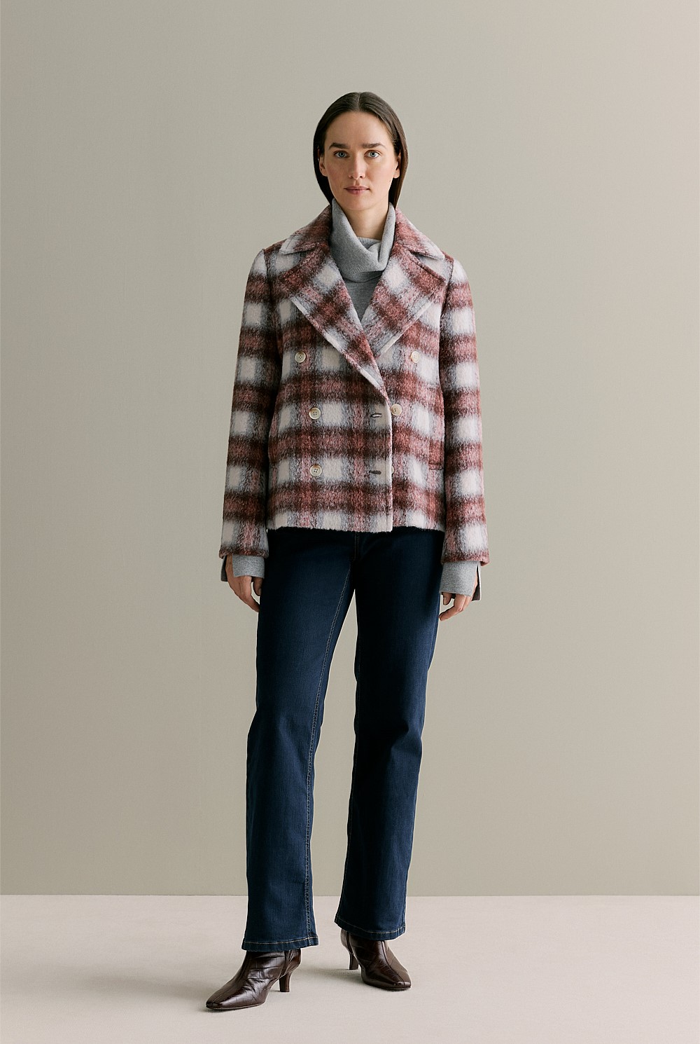 A timeless piece, tailored in a double-breasted fit with a hip-grazing hem. Crafted from a brushed wool and alpaca check.